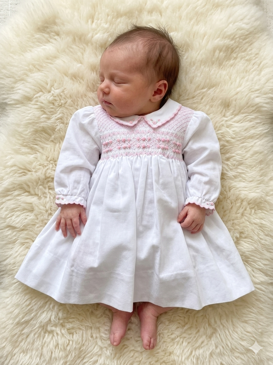 Our carefully curated collections feature hand-smocked dresses, knitted sets, and occasion wear that blend traditional craftsmanship with modern comfort.