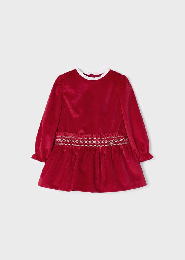 Mayoral Red Velvet Smocked Detail Dress - 2938