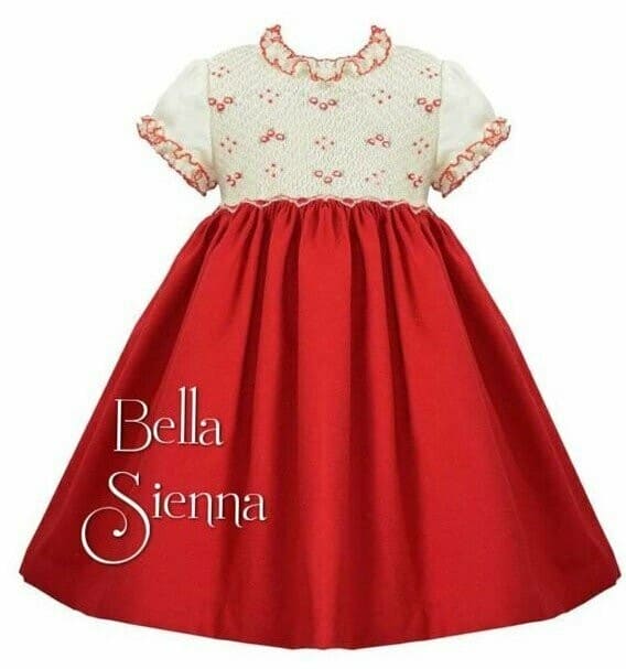 Pretty Originals Cream & Red Smocked Dress MT01107