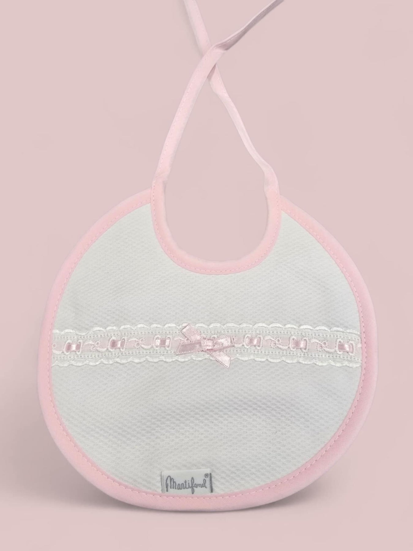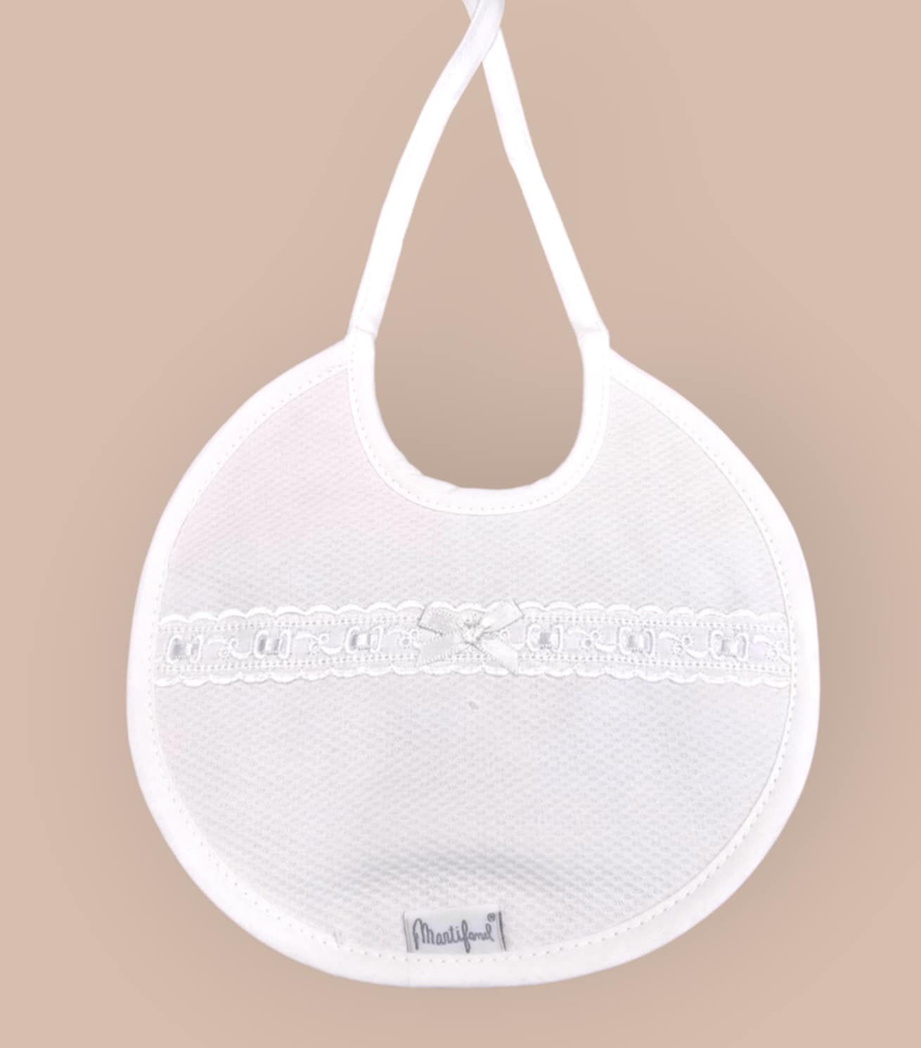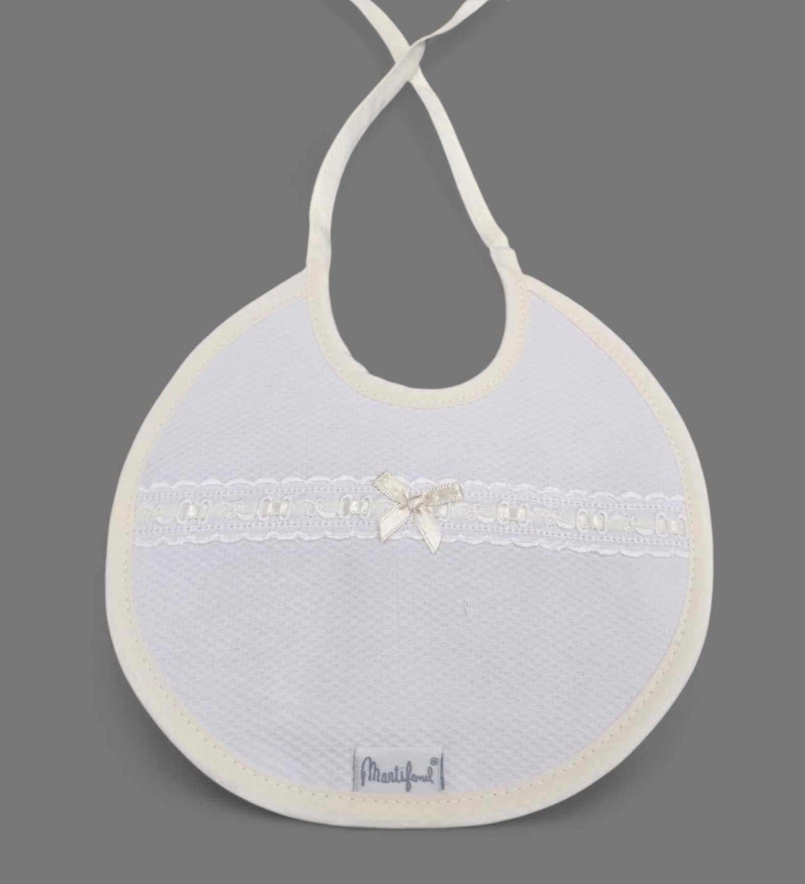 100% Cotton Unisex Ivory Ribbon & Bow Detail Bib
