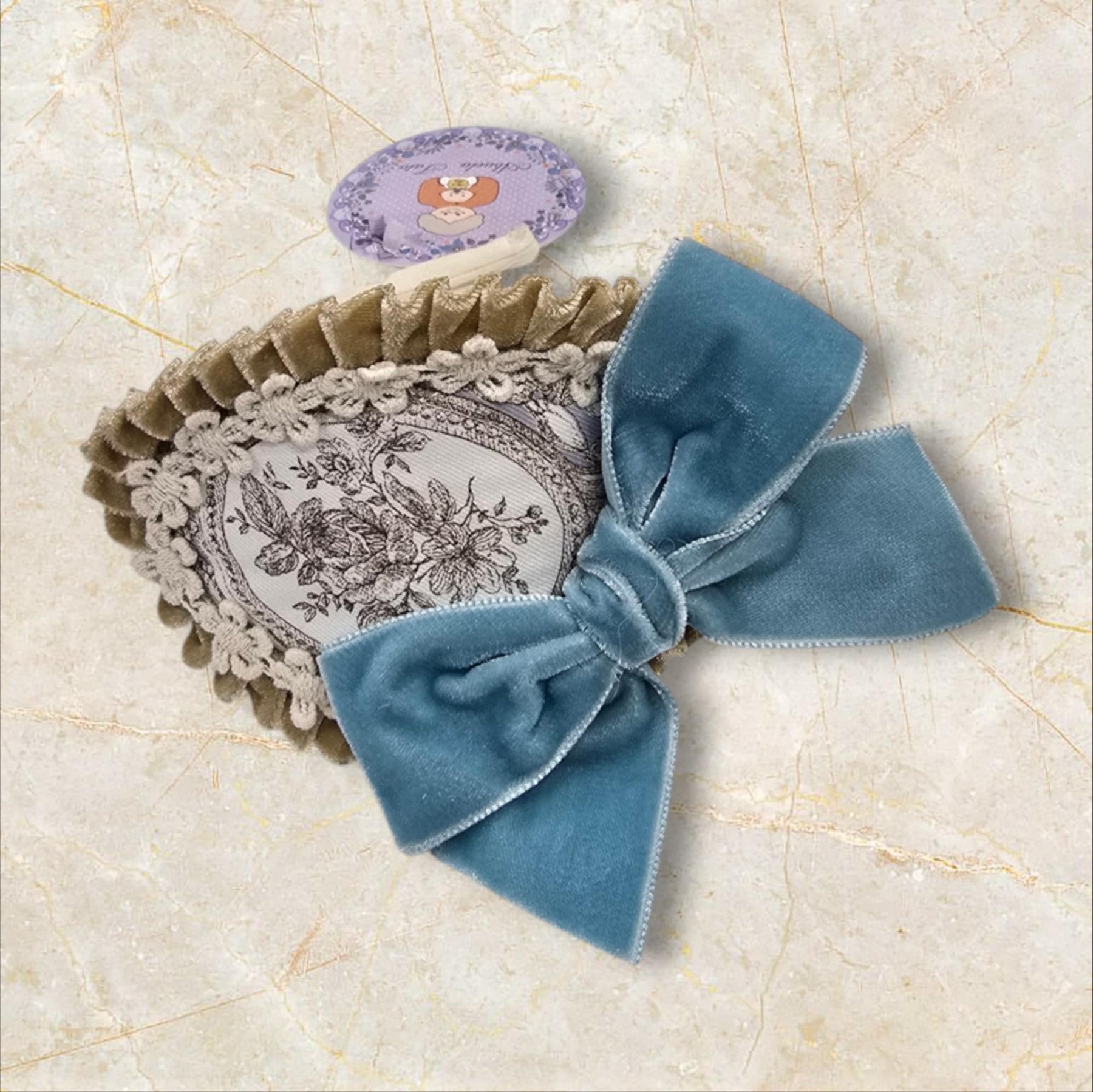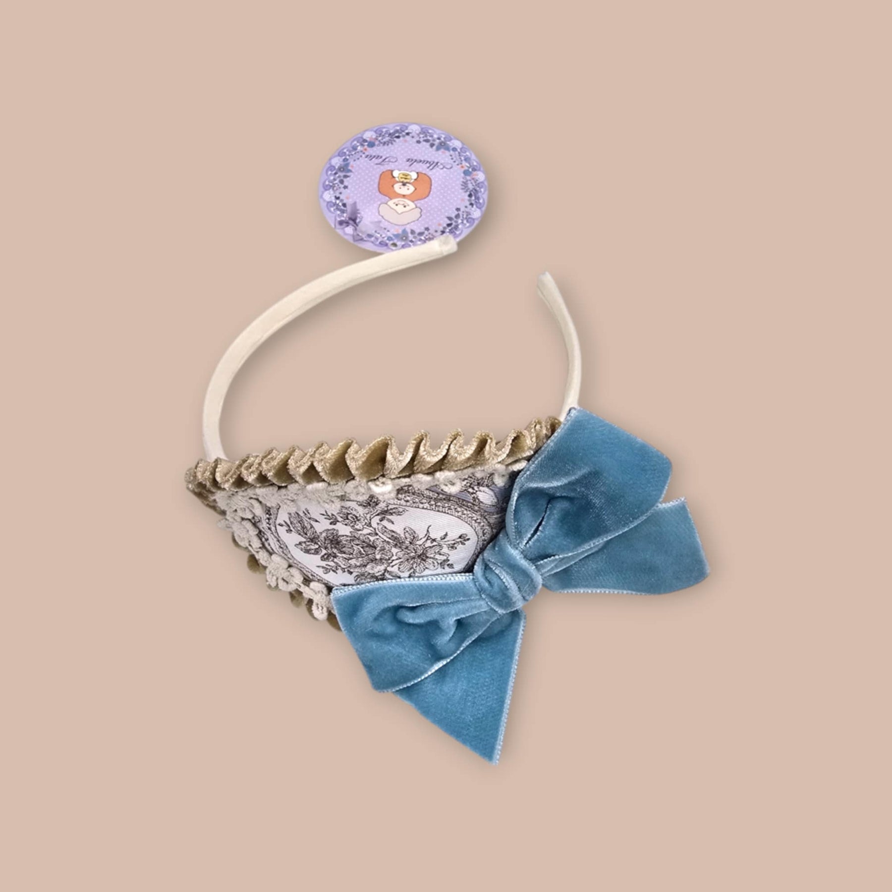 Abuela Tata Girls Blue And Beige Velvet Bow Headband