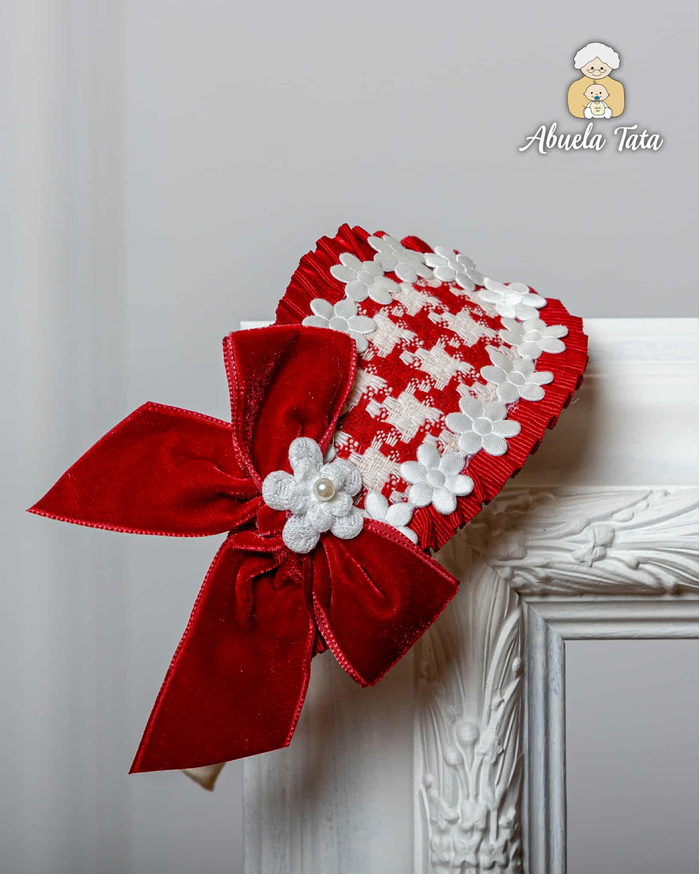 Abuela Tata Red & Cream Dog Tooth Headband To Match - 34099392 - 0899392