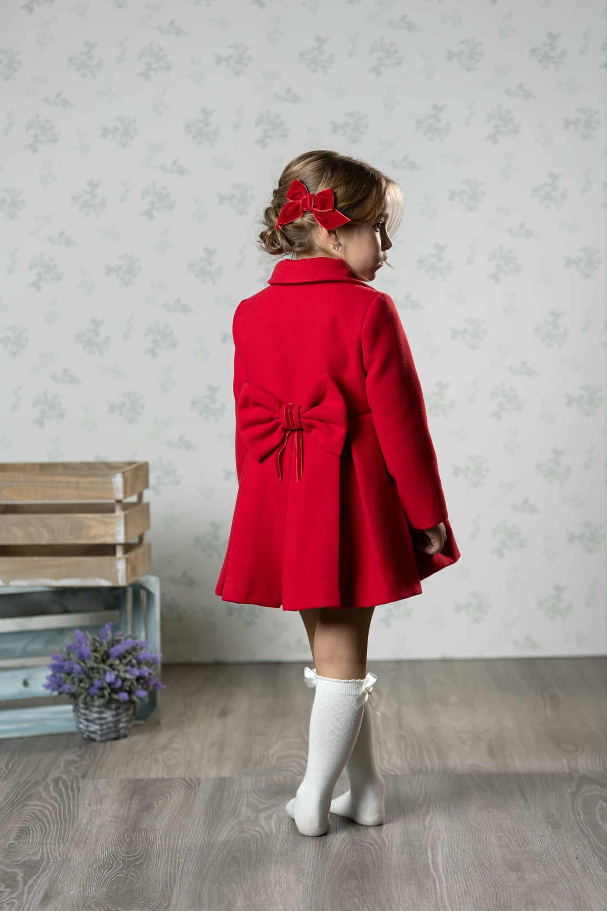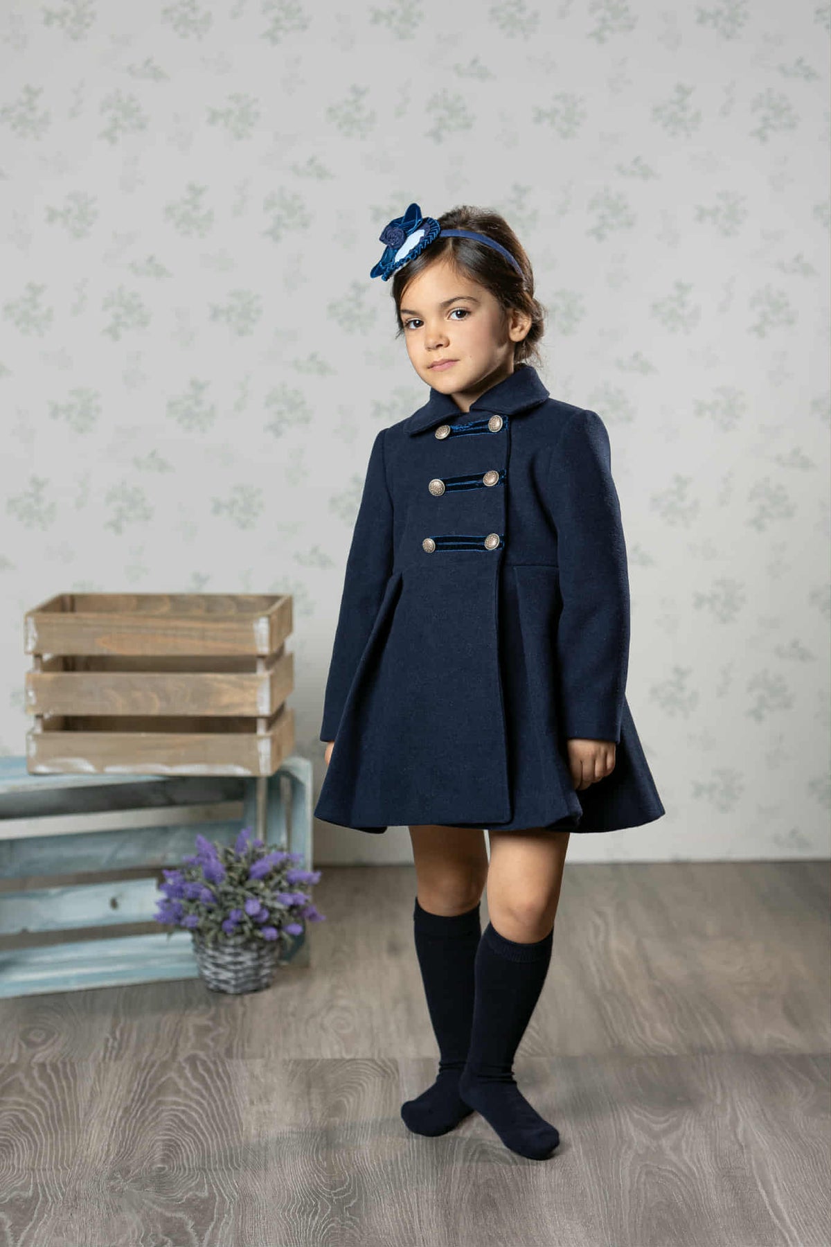This classic navy coat by Abuela Tata is perfect for keeping your girl warm and stylish. It features traditional style buttons, a big bow on the back, and a sturdy construction made with 100% cotton. Your girl will look adorable and feel comfortable in this navy traditional style coat.