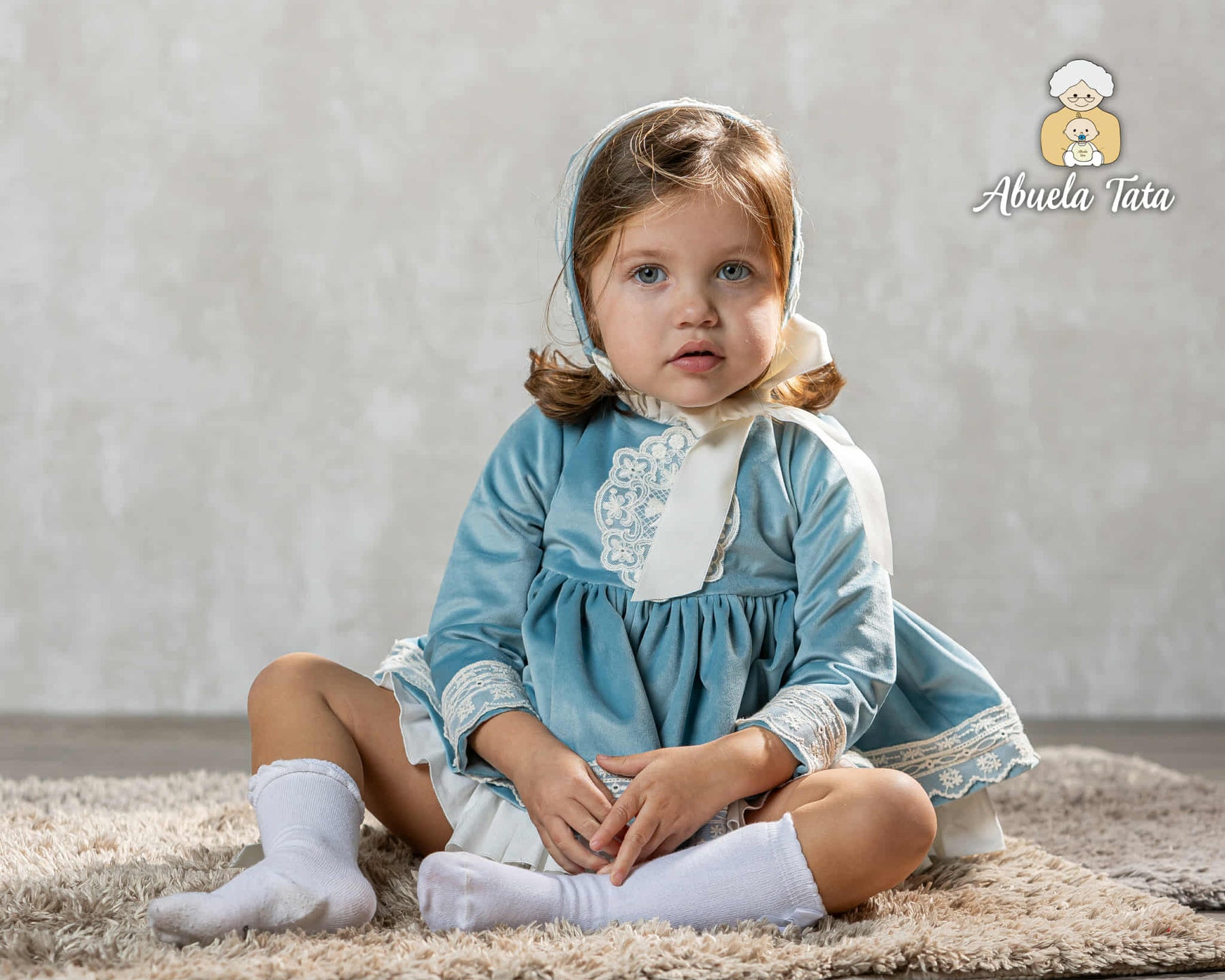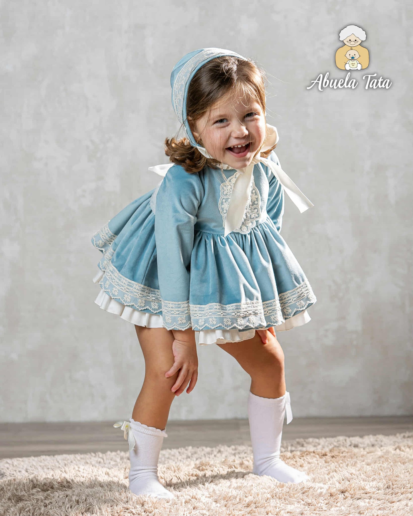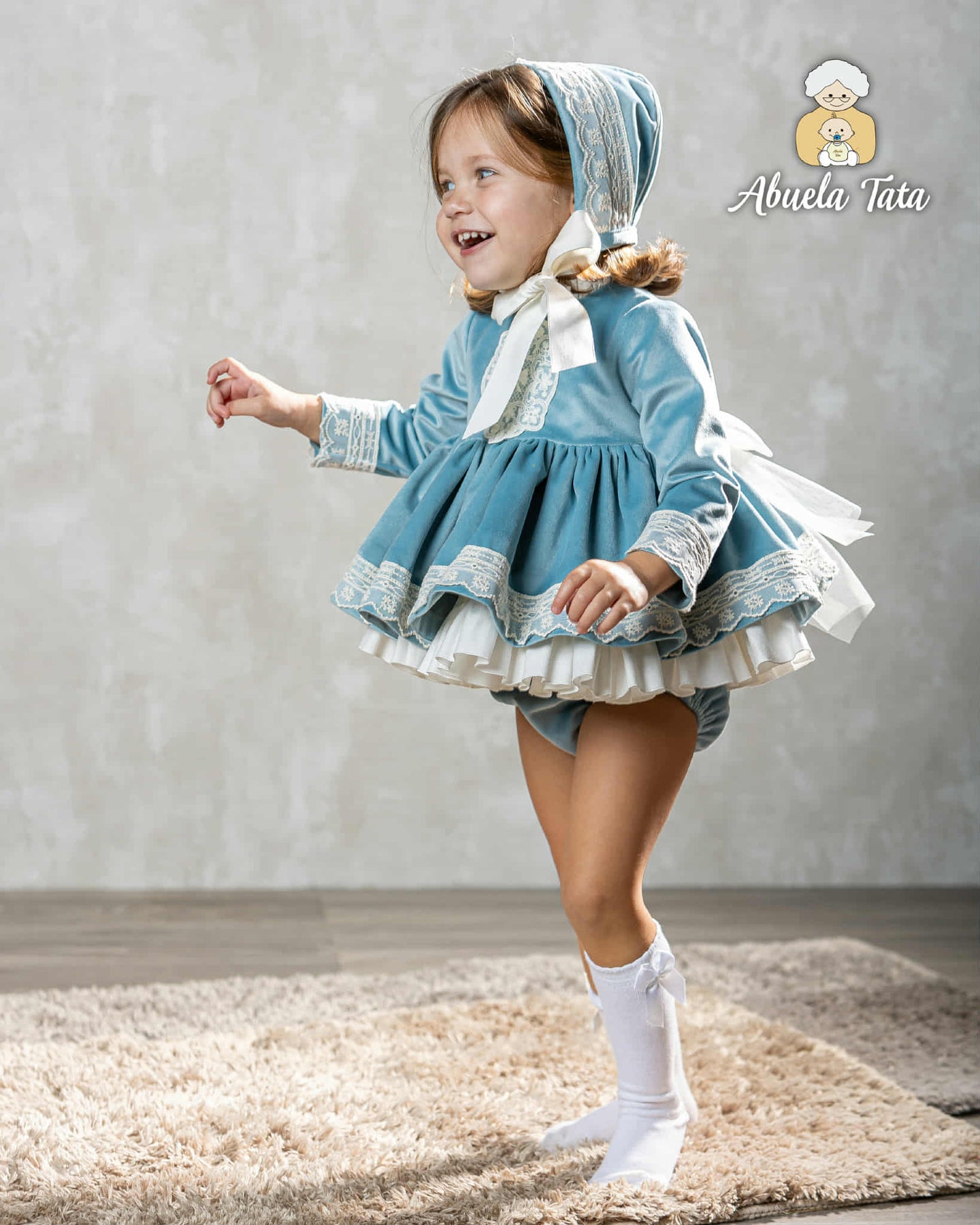 Abuela Tata Velvet & Lace Dress, Pants & Bonnet Set - 1299393