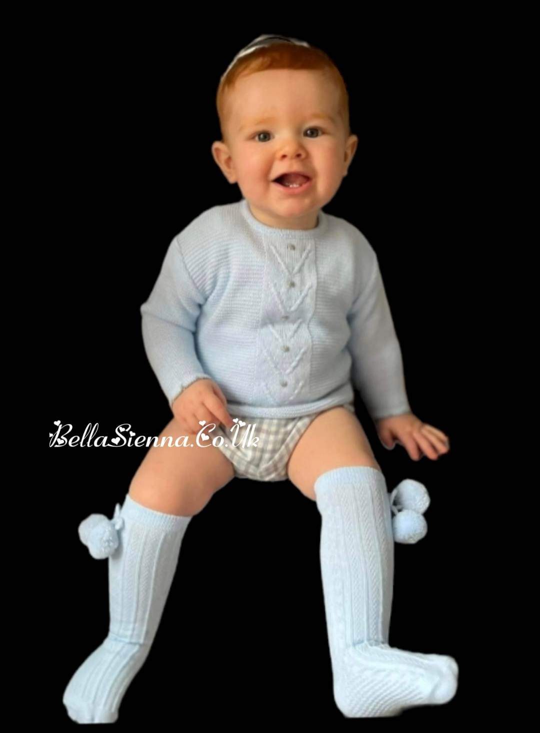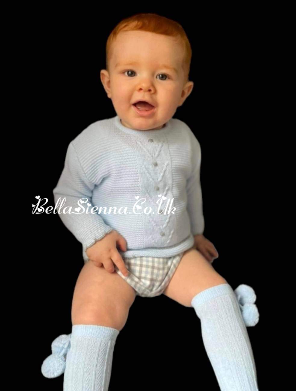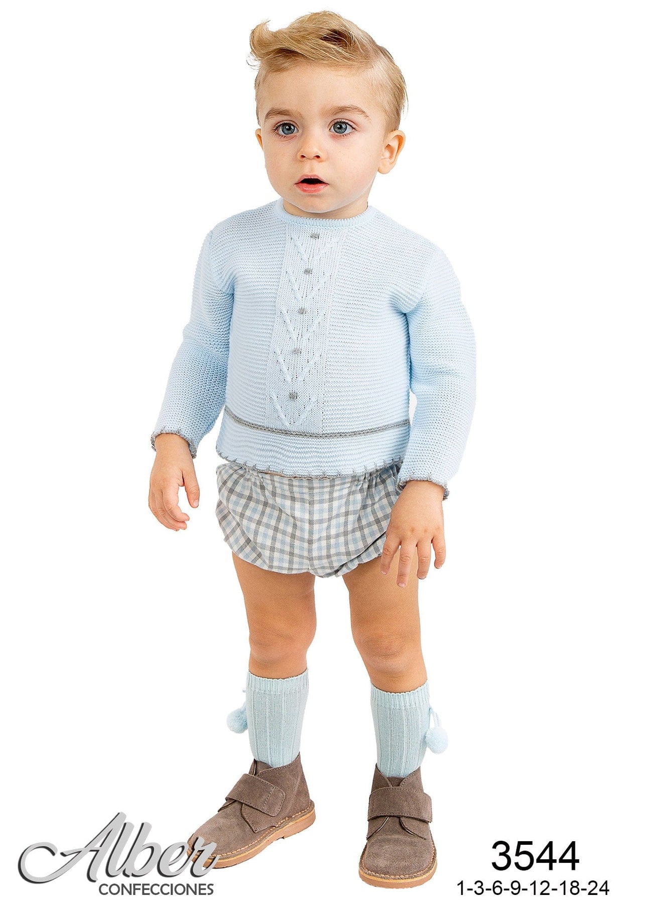 Expertly crafted for comfort and style, the Alber Boys Two Piece Blue & Grey Outfit is a must-have for your little one. The knitted blue top with grey details offers a soft and cozy fit, while the 100% cotton matching pants provide breathability and allow for easy changing with an elasticated waist and legs. Perfect for any occasion!