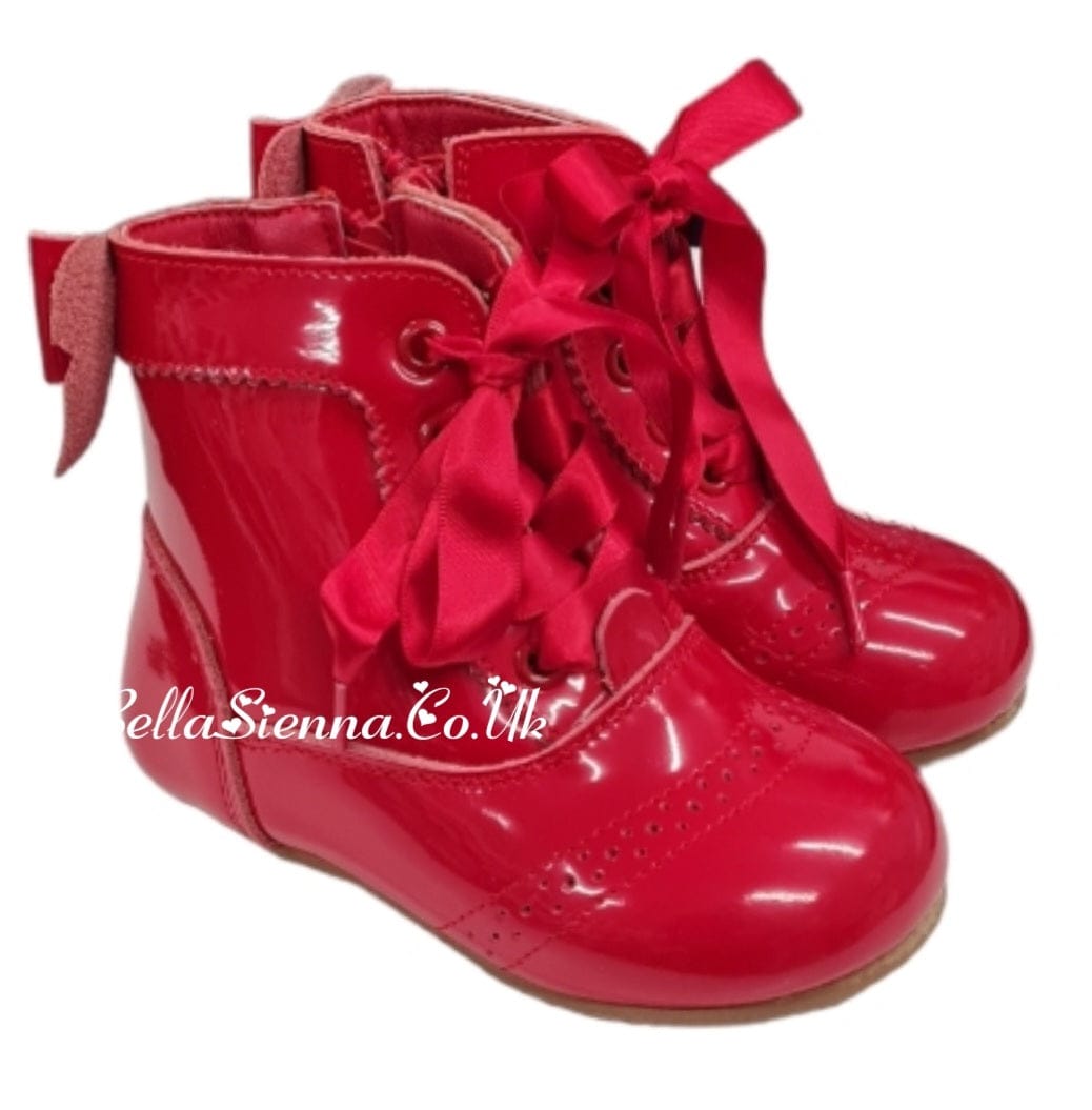 Beau Kid Red Patent Leather Boots - Daisy