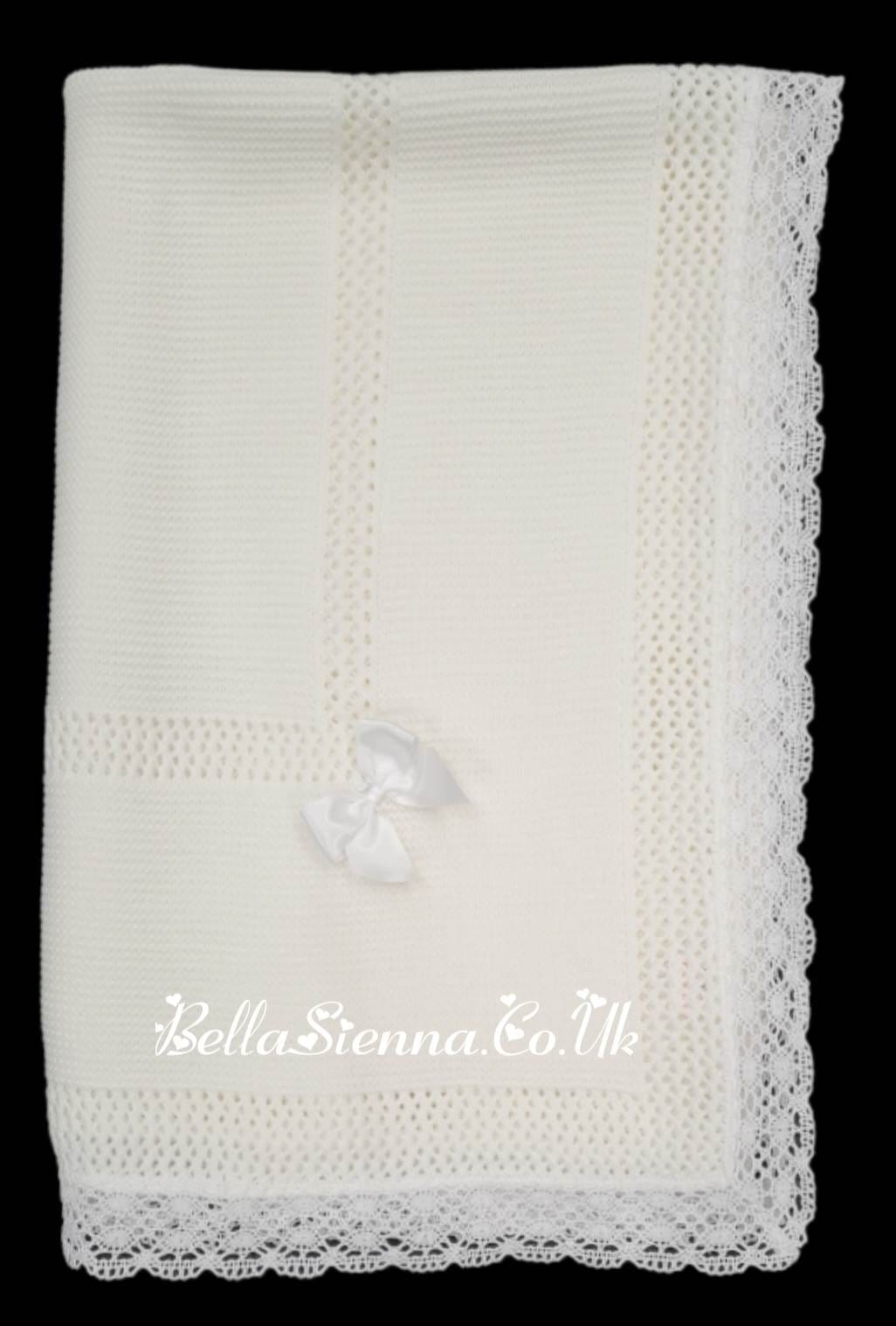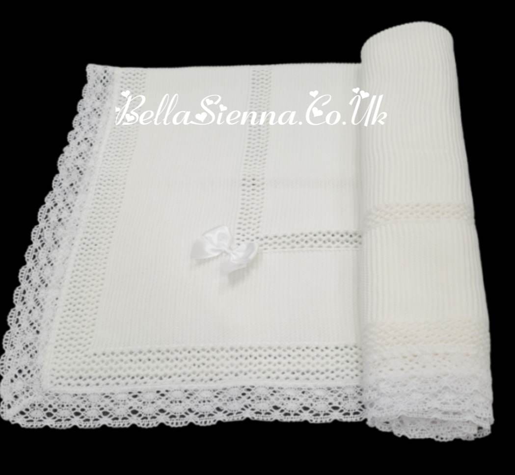 Beautiful Traditional White/Ivory Baby Receiving Shawl With Lace - 3468