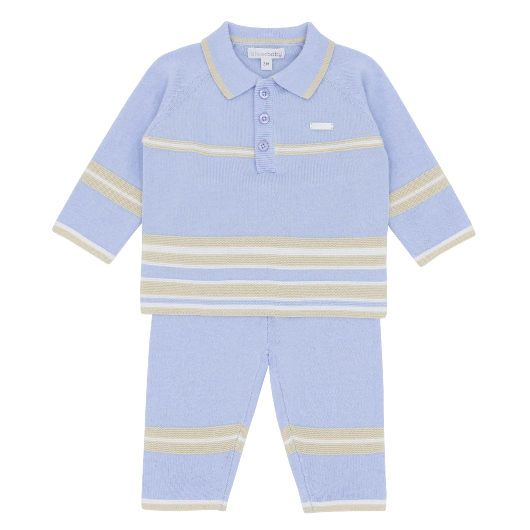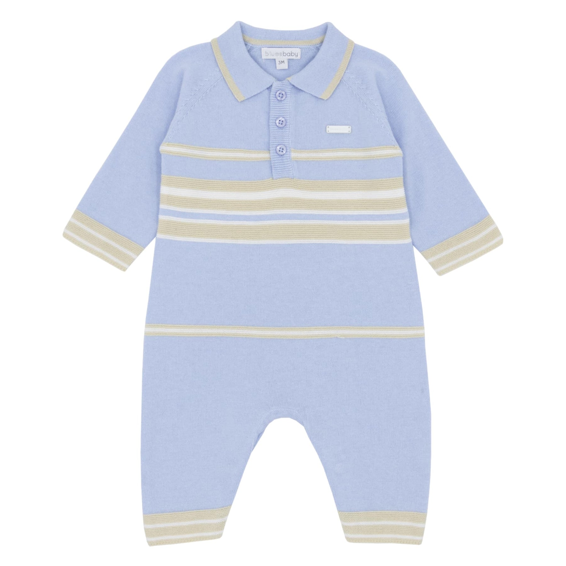 Blues Baby Boys Blue & Beige Knitted Romper - BB2127