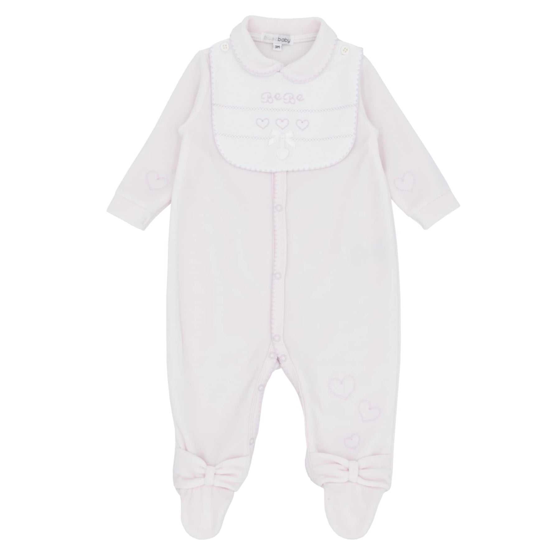 Blues Baby Girls Pink Velour All In One Babygrow Sleepsuit With Detachable Bib - BB2071