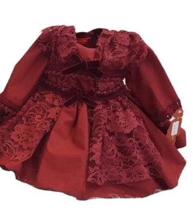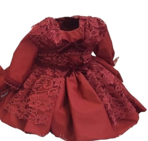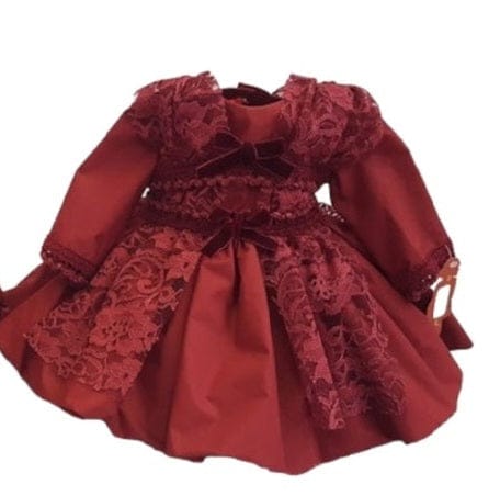 La Marquesita Real La Duquesa Burgundy Shirley Puffball Dress & Matching Hair Clip