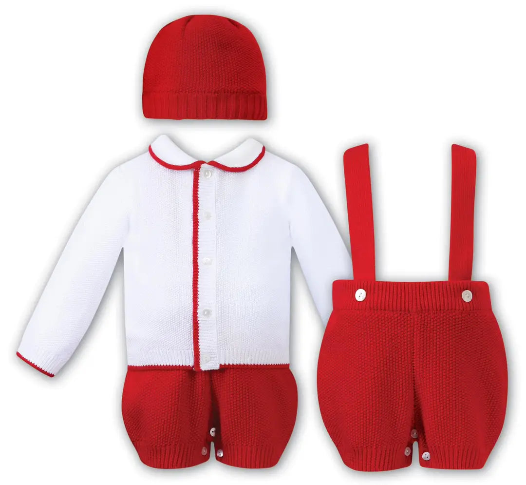 Dani By Sarah Louise Baby Boys Three Piece Knitted Red & White Oufit Including Hat - D09554