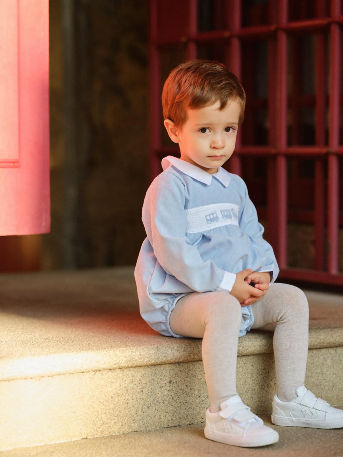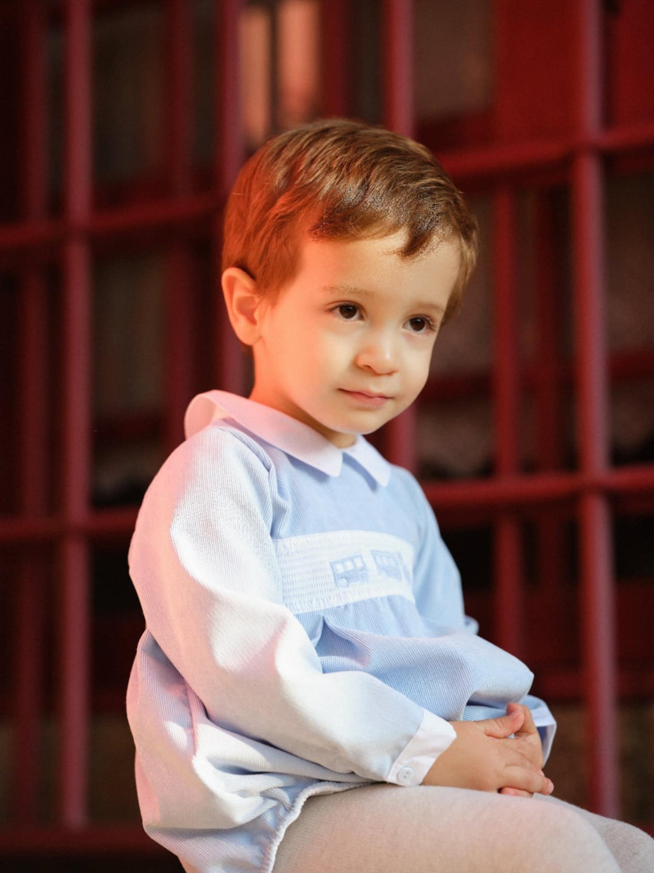 Deolinda "BRIAN" Blue Corduroy Smocked Train Romper - DBI25513