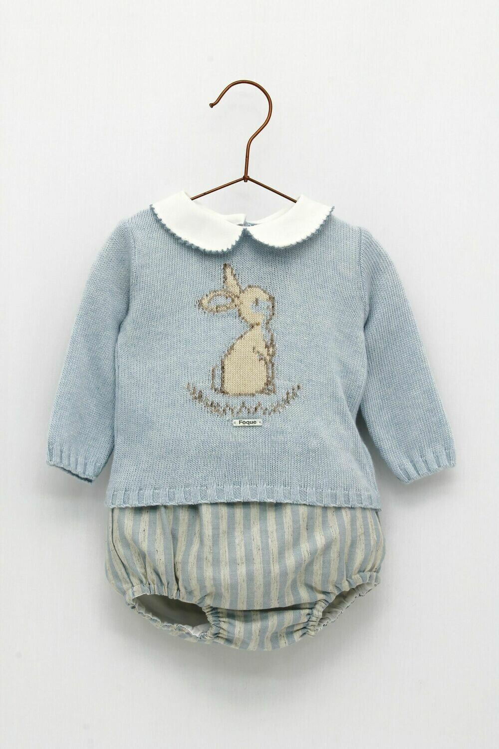 Foque Winter 2 Piece Set With Bunny In Blue For Baby Boy