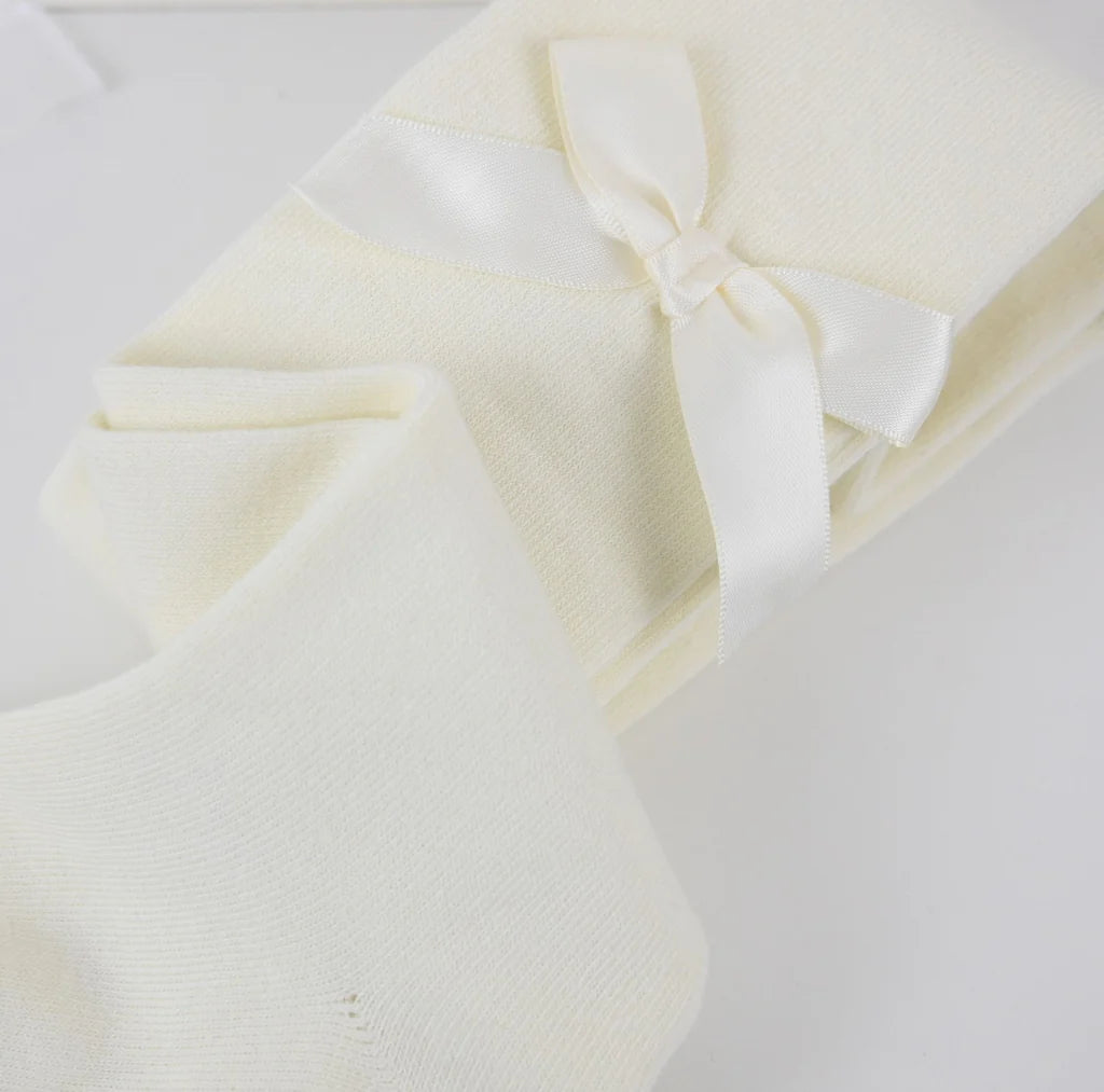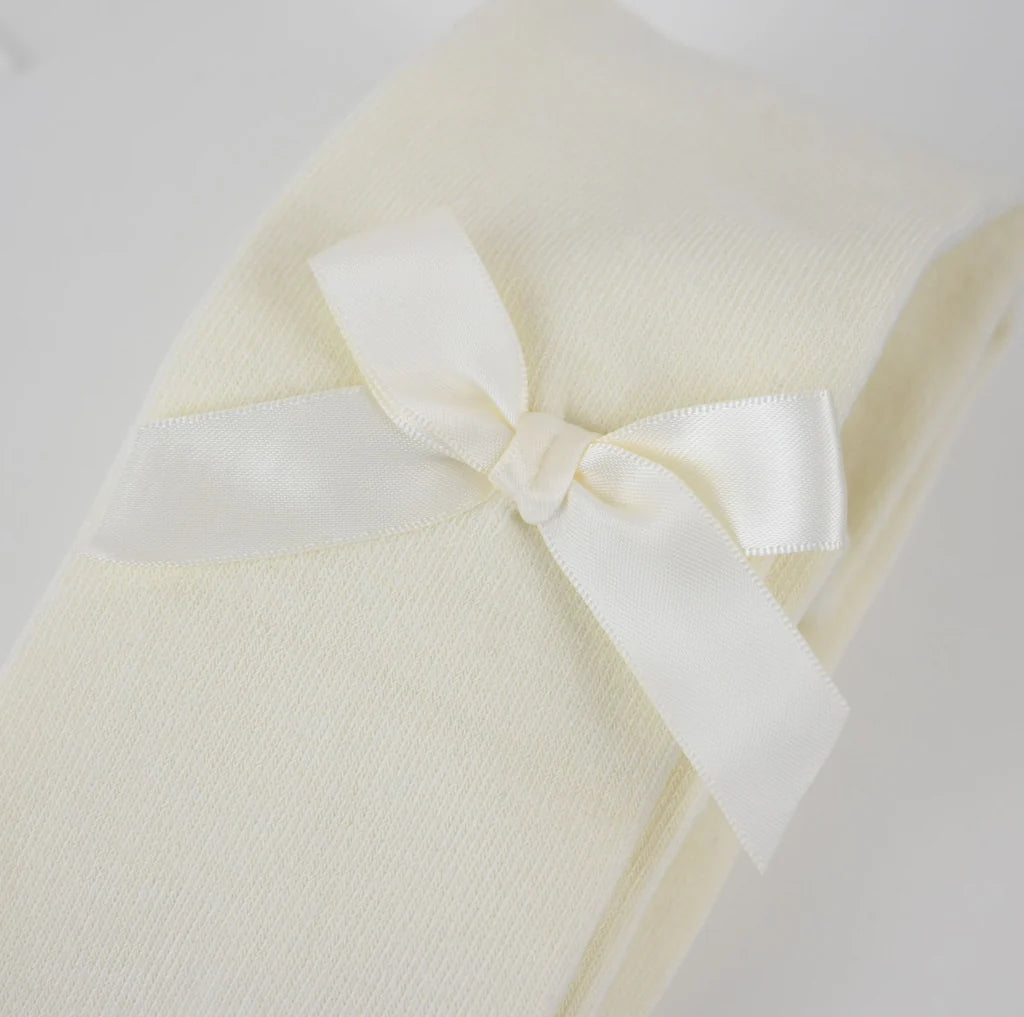 Beautiful quality girls cotton rich tights, the ultimate in softness, durability and comfort with a smart ribbon on each leg just above the ankle. Perfect for the cooler months. These tights have a fully formed foot, full gusset and elasticated waistband.