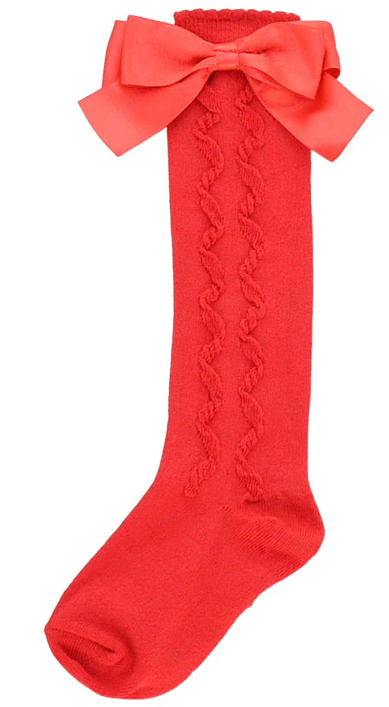 Our fabulous knee high Grazia socks are the perfect accessory to give any outfit a wow factor. With a stylish ruffle effect to the side of the leg and a gorgeous big silky ribbon bow at the top.