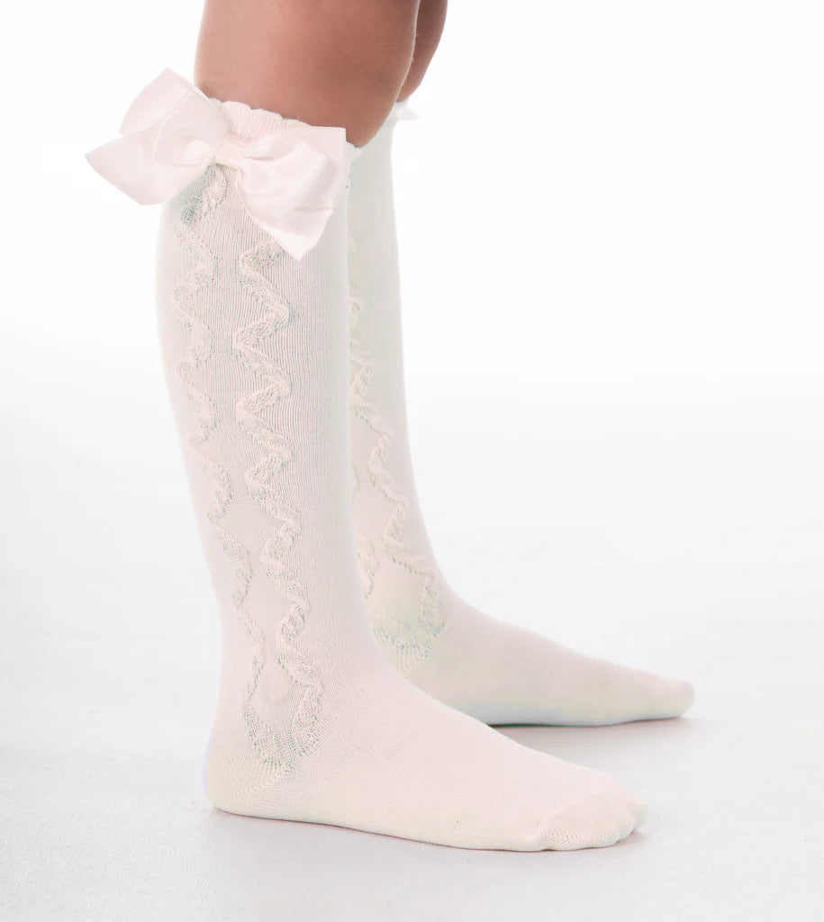 "Grazia" Girls Knee High Ivory Bow Socks