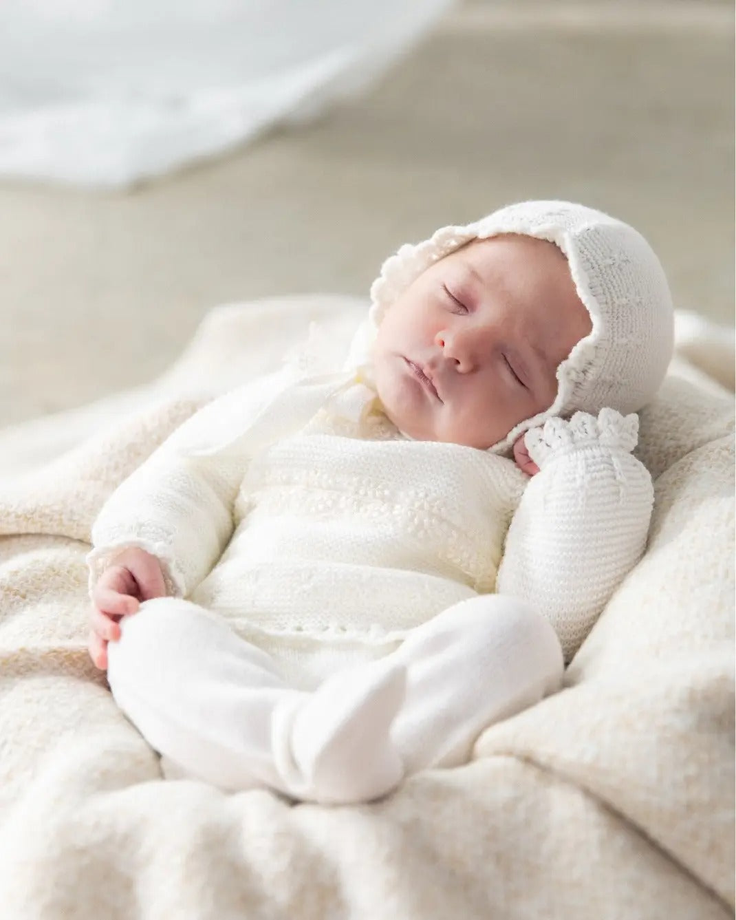 Mac ilusion Baby Girls Three Piece Ivory Knitted Set With Ivory Lace - 9820 - Crudo