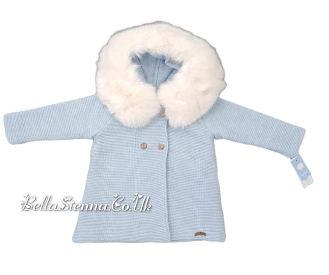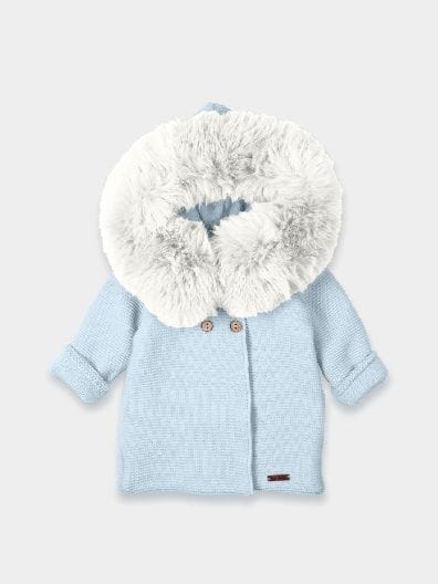 Mac ilusion Knitted Coat With Faux Fur Hood - 8697 Blue