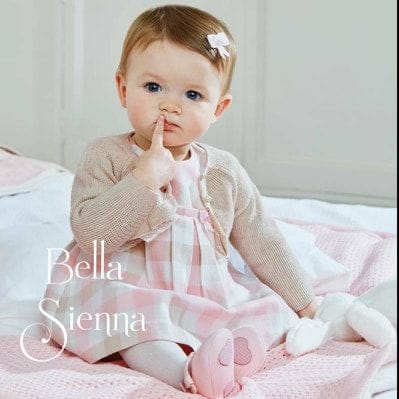 This ivory and pink check dress from Mayoral will make your baby girl look and feel like a princess. Crafted from a soft material, it features pleating down the front and a cute little pink bow button fastening to the back. Perfect for special occasions.