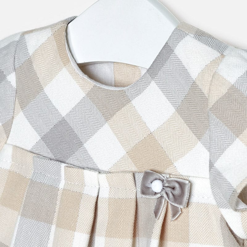 Mayoral Baby Girls Beige And Grey Check Dress 2846