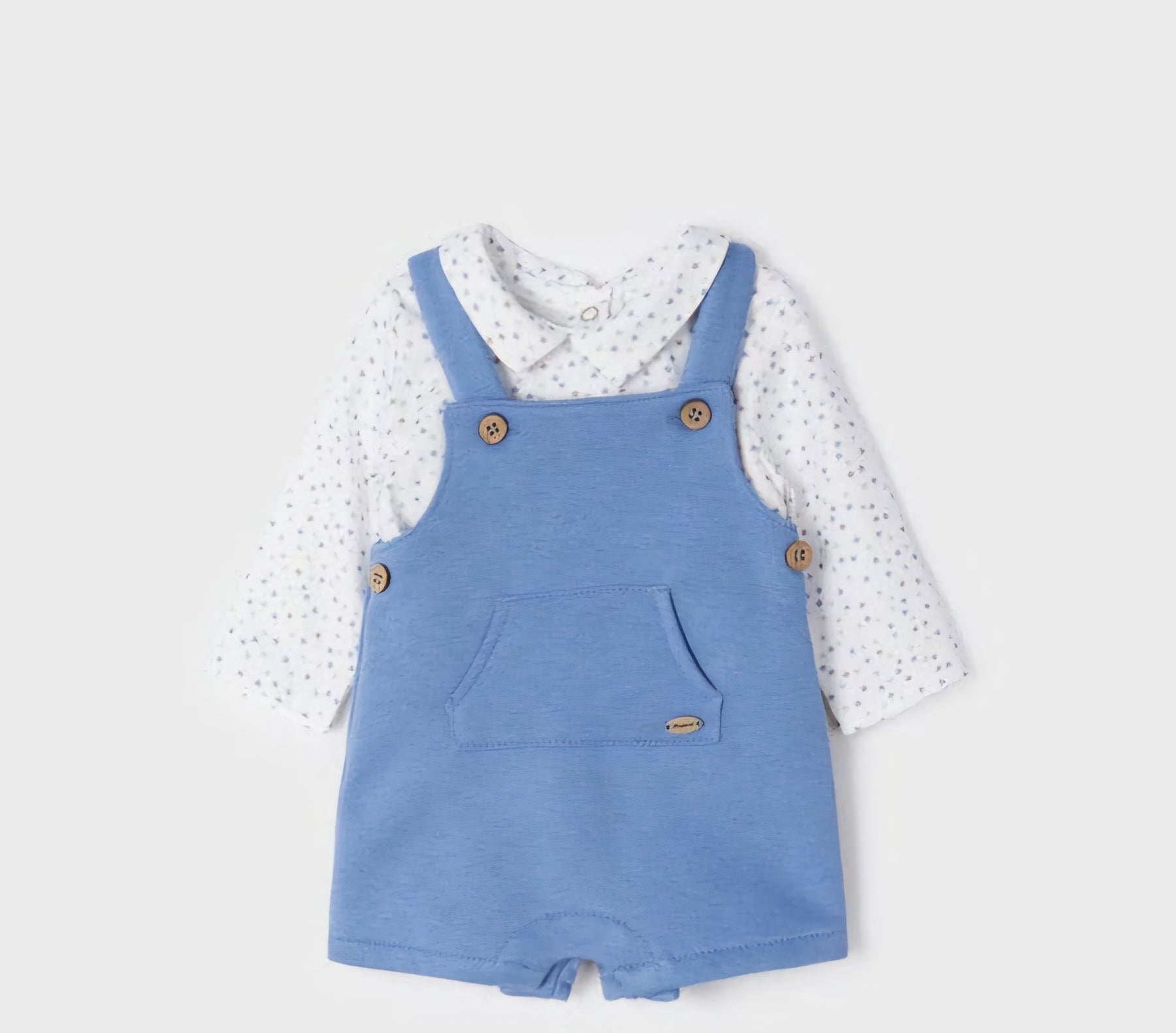 This newborn outfit from Mayoral ECOFRIENDS is perfect for your little one. The two pieces feature dungarees with a matching shirt, made from 100% organic cotton for added comfort. Get dressed in style with this stylish and eco-friendly set.