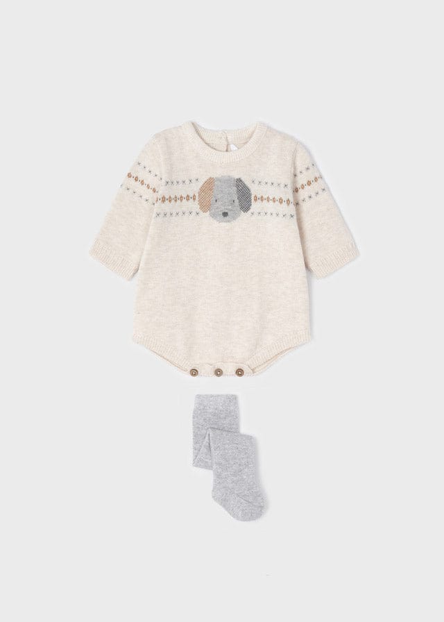 Mayoral ECOFRIENDS knitted romper with tights set newborn milk vig 2638