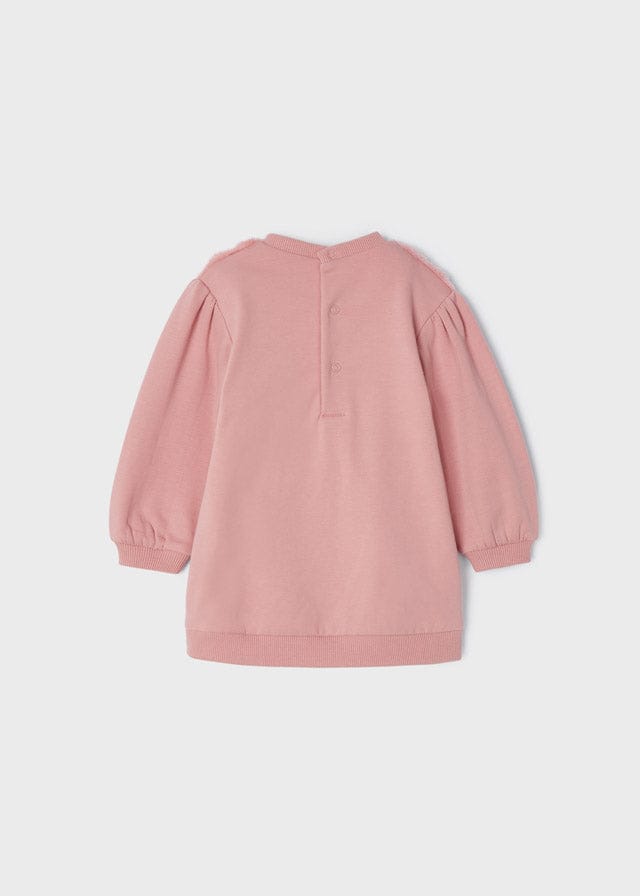 Long sleeved dress for baby. Snap-button fastening on the back to allow the garment to be put on easily. Made using elegant and classic velvet fabric.