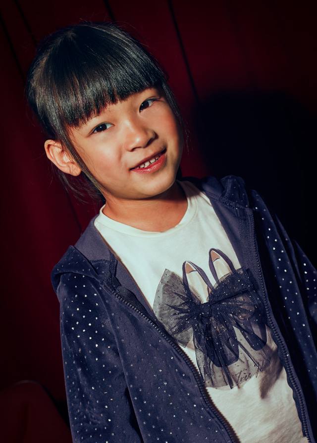 Navy velour hoodie featuring delicate silver spots, matching navy velour tracksuit bottoms, and a cream long-sleeved top adorned with a delicate ballerina slippers print and a navy voile bow. Crafted for softness and ease of movement, this set is perfect for active days while maintaining a refined, coordinated look. Ideal for layering and versatile wear, it offers both practicality and a charming aesthetic for young girls.