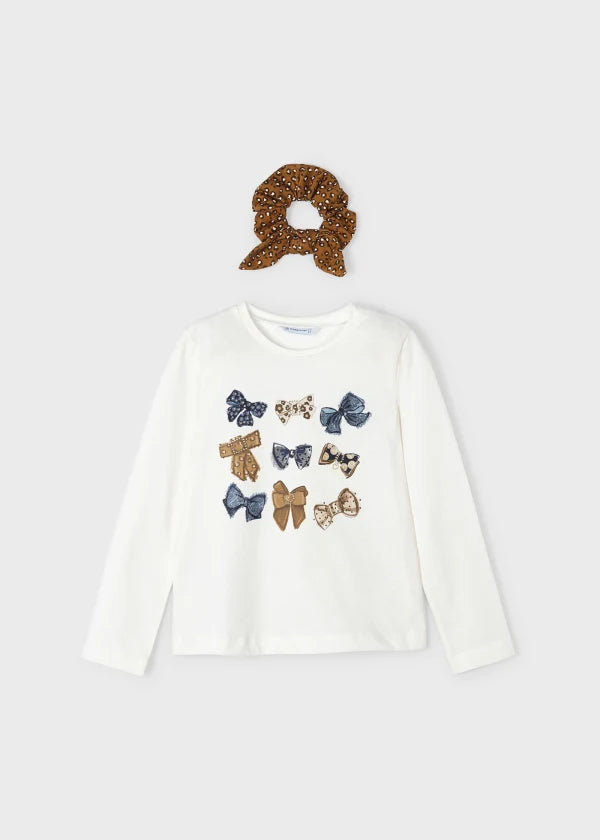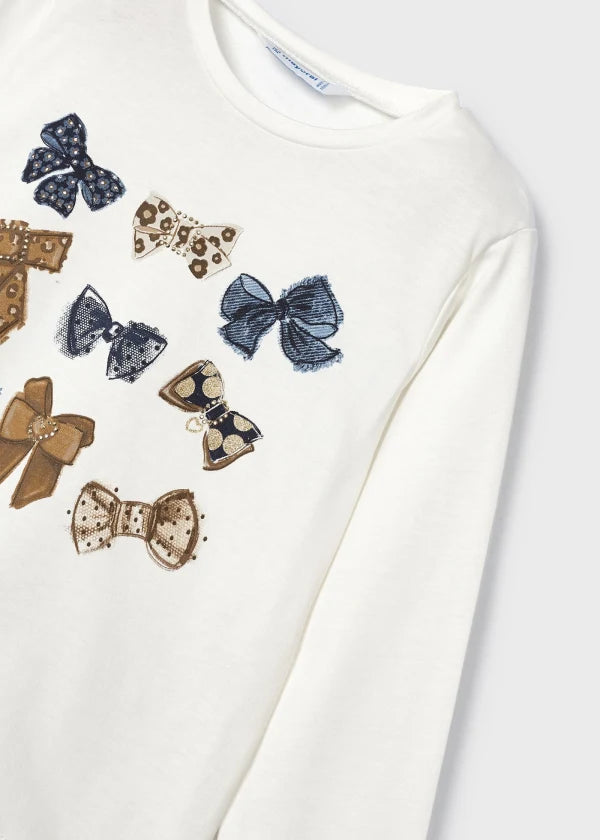 Long sleeved T-shirt for girl. Decorative elements: design on the front.
