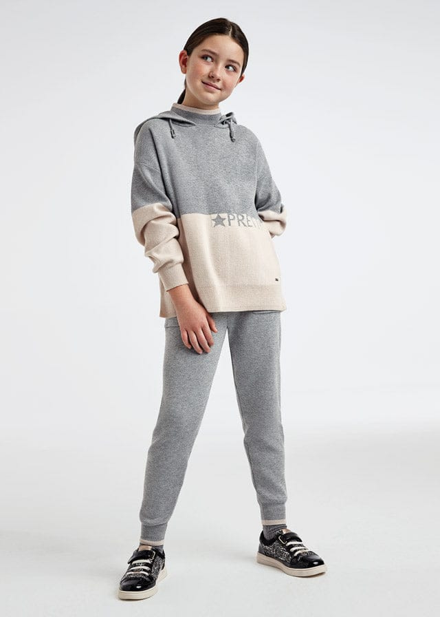 Relaxed jumper for girl. High neck collar. Hooded design.