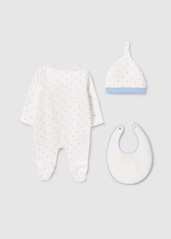 This Mayoral Baby 3 piece cotton set is crafted with Better Cotton fabric to provide soft, breathable comfort for your little one. The durable fabric ensures all-day comfy wear, while the eye-catching pattern adds a touch of style. Perfect for any occasion.