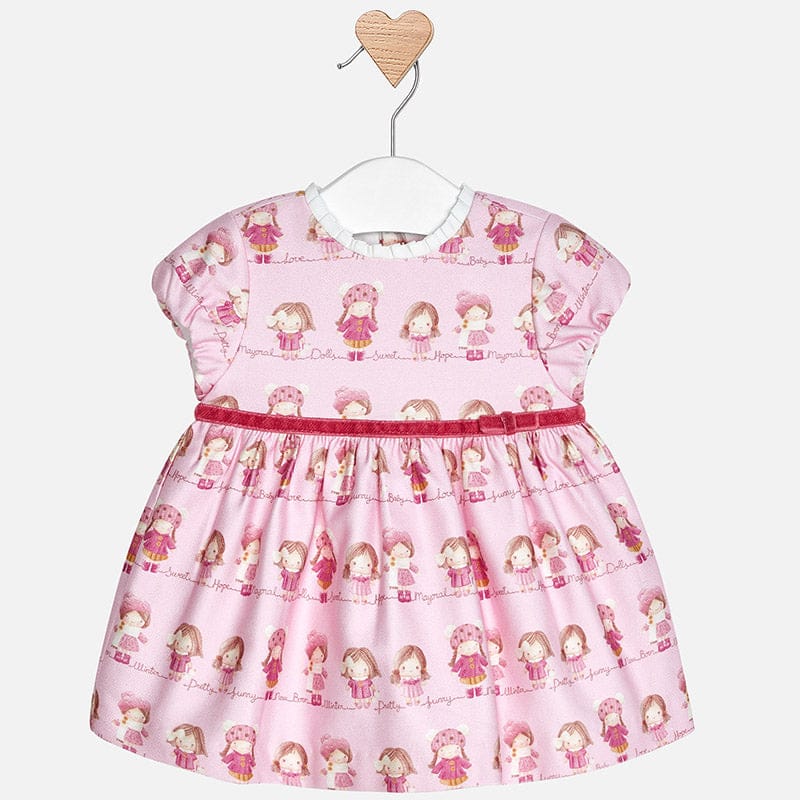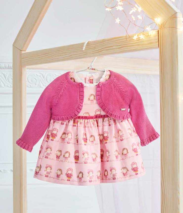 Mayoral Doll Print Pink Dress & Matching Cardigan - 2860