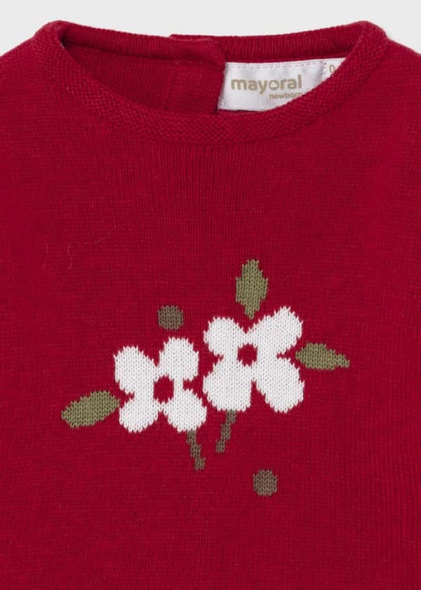 Long sleeved T-shirt for newborn. Button fastening at the back. Decorative elements: decorative appliques, design on the front