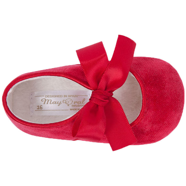 Mayoral Red Mary Jane prams shoes with red tie satin bow. -9364
