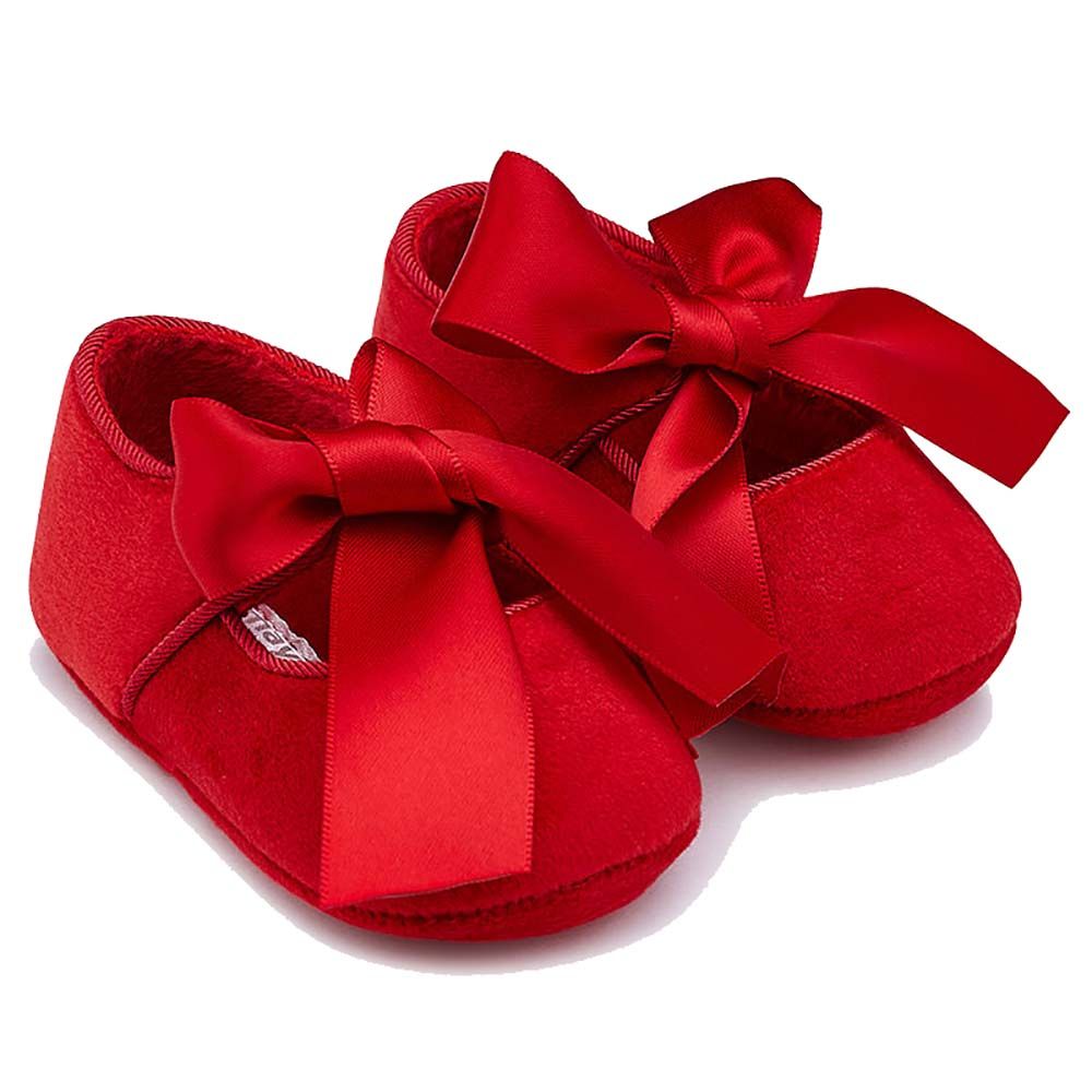 Mayoral red Mary Jane prams shoes with red tie satin bow.