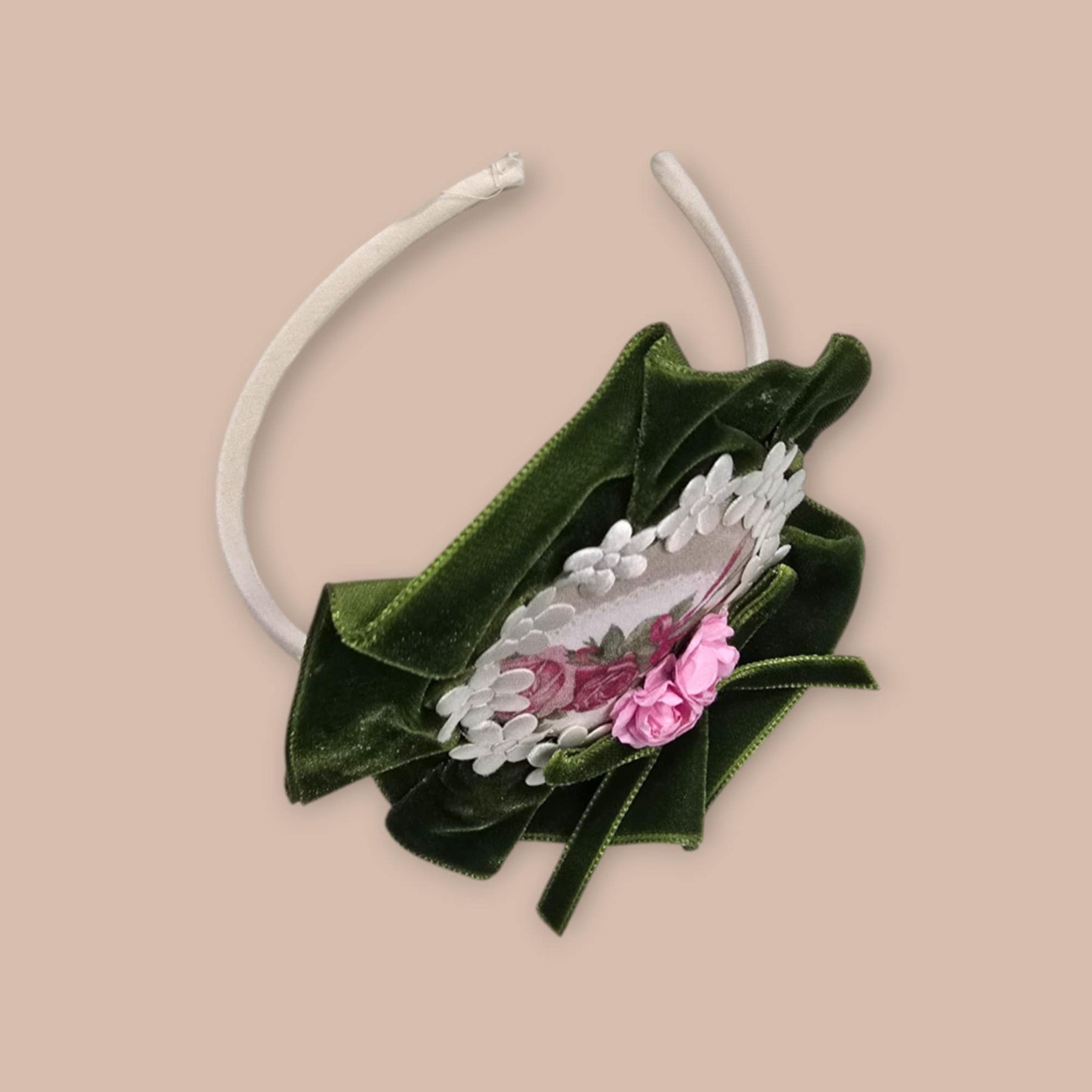 Girls Green velvet hairband by Abuela Tata for a classic look. The narrow band is covered in soft fabric for a comfortable fit.