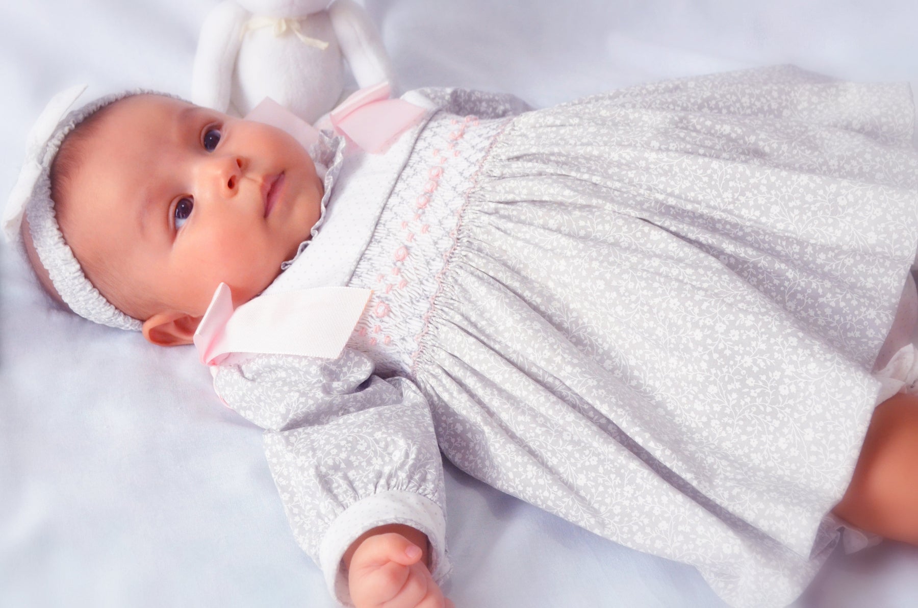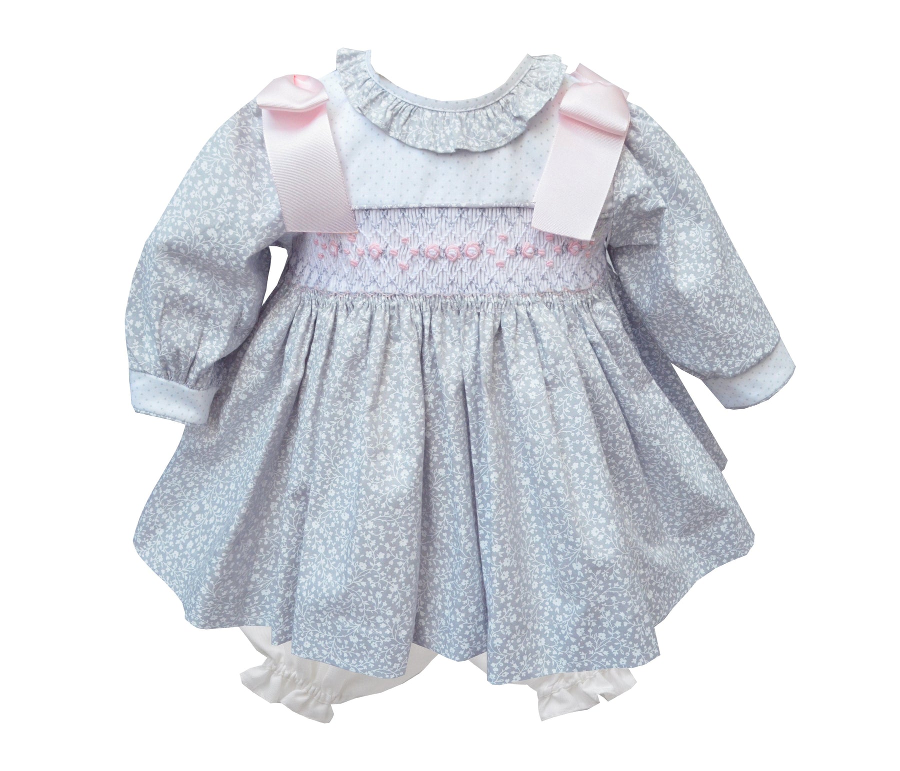 Pretty Originals Grey & Pink Smocked Dress, Bloomers & Headband - MT02237