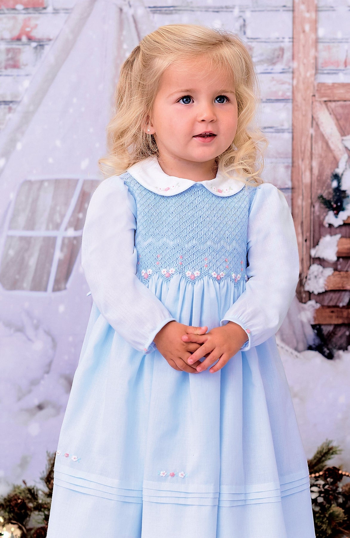 Sarah Louise Blue & Pink Hand Smocked Long Sleeved Dress - 012783