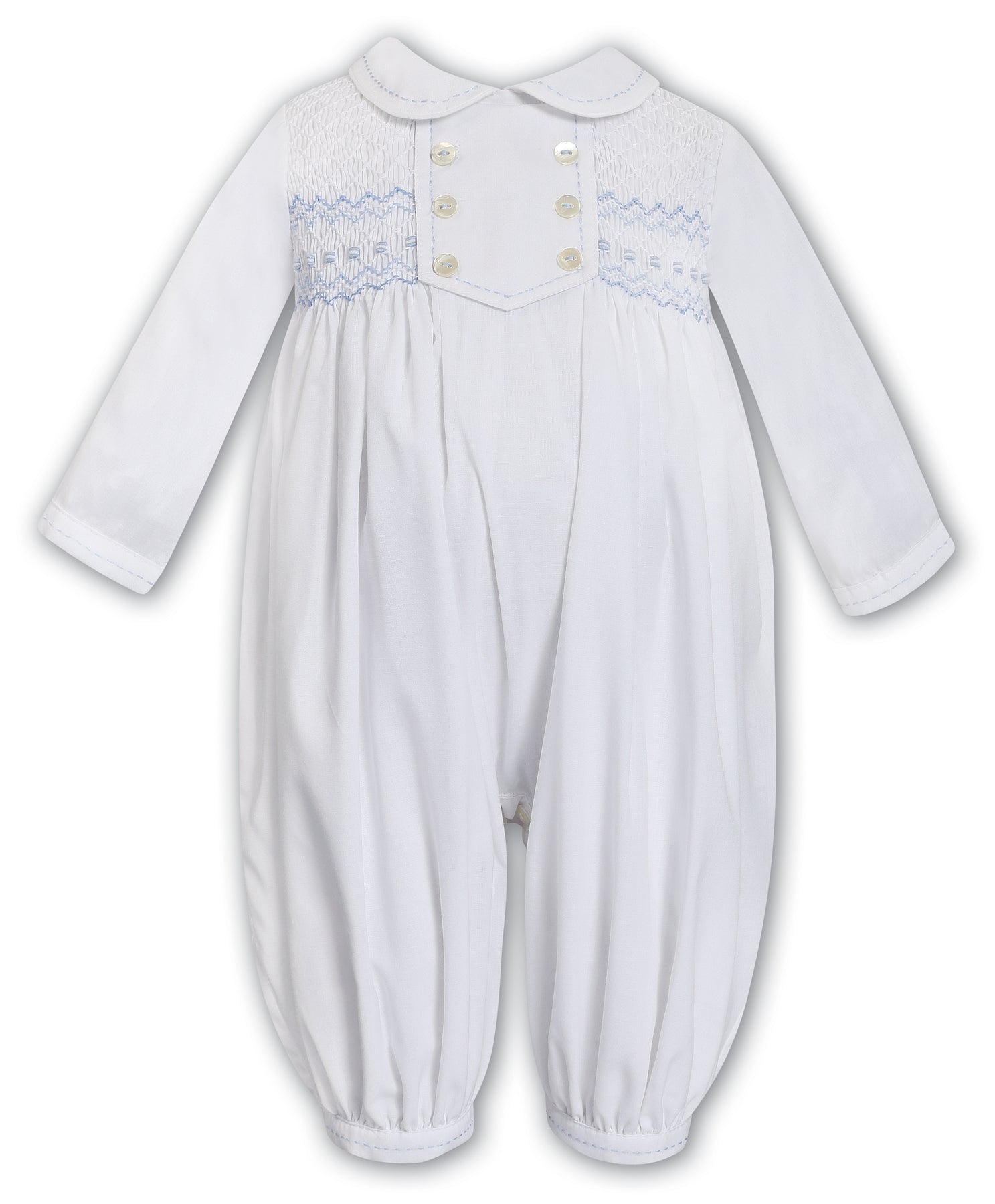 Sarah Louise Boys Blue & White Hand Smocked Romper- 013682