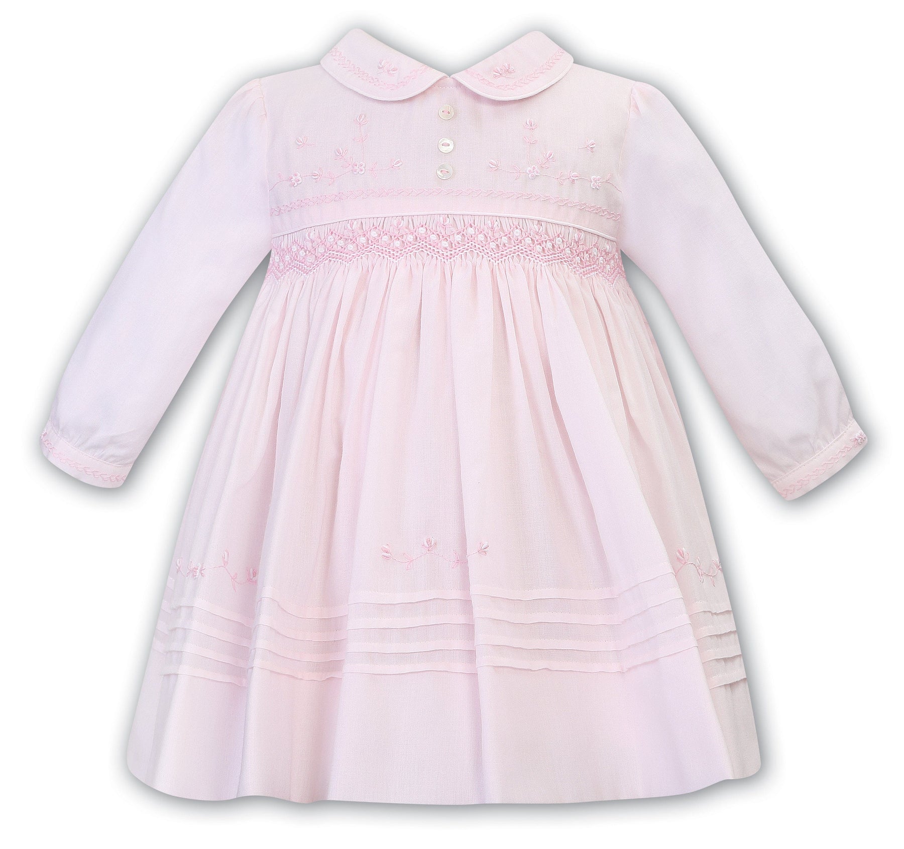 Sarah Louise Hand Smocked Long Sleeved Pink Dress - 012757