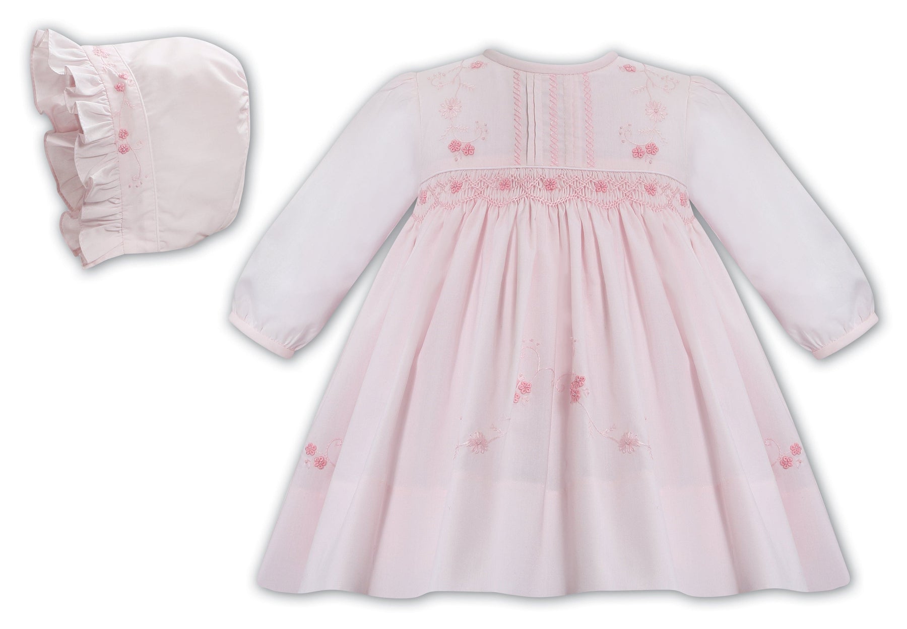 Sarah Louise Pink Hand Smocked Dress & Bonnet Set - 013360