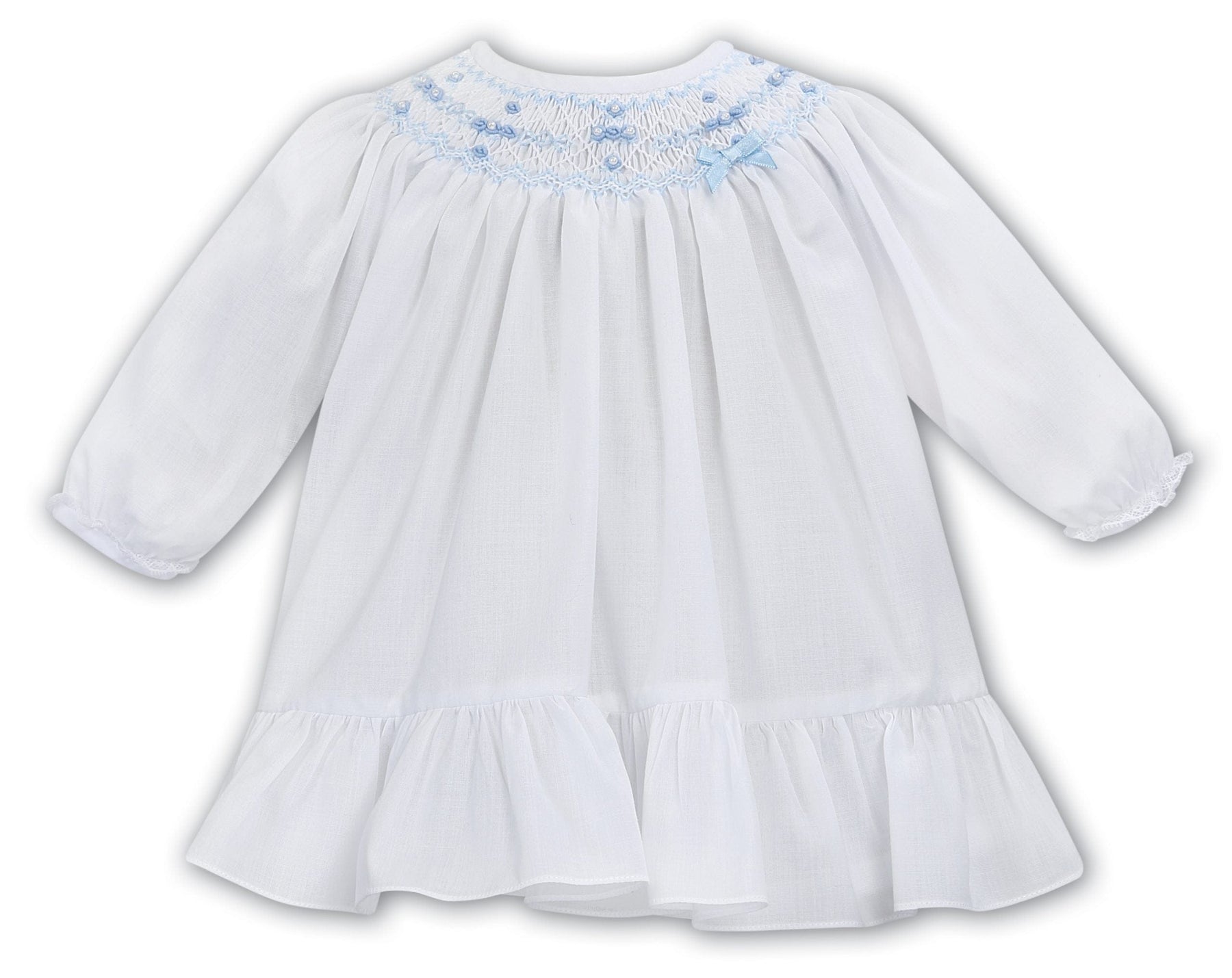 Sarah Louise Long Sleeved Smocked White & Blue Dress - 012766L