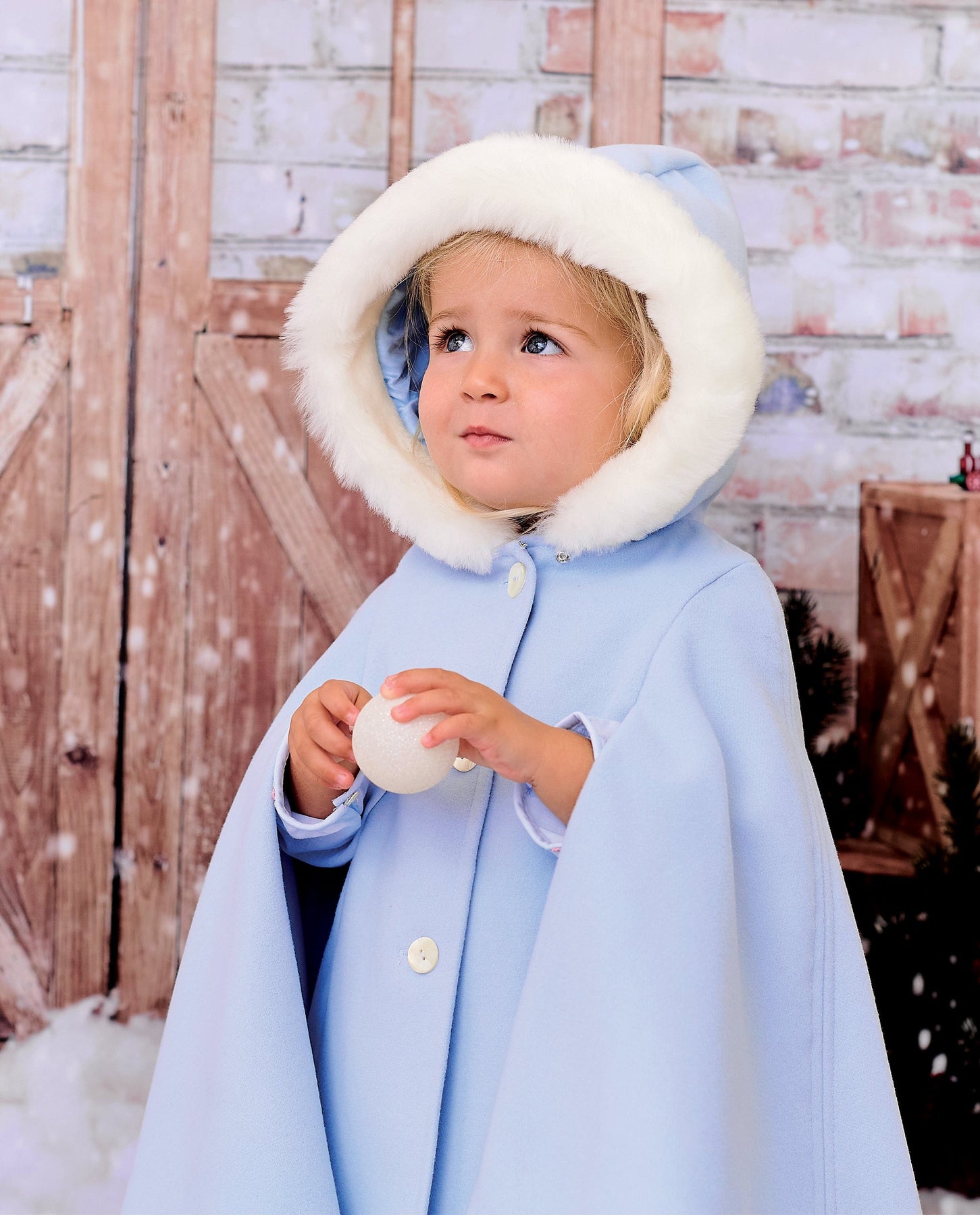Sarah Louise Navy Cape With White Faux Fur Trim - 012873
