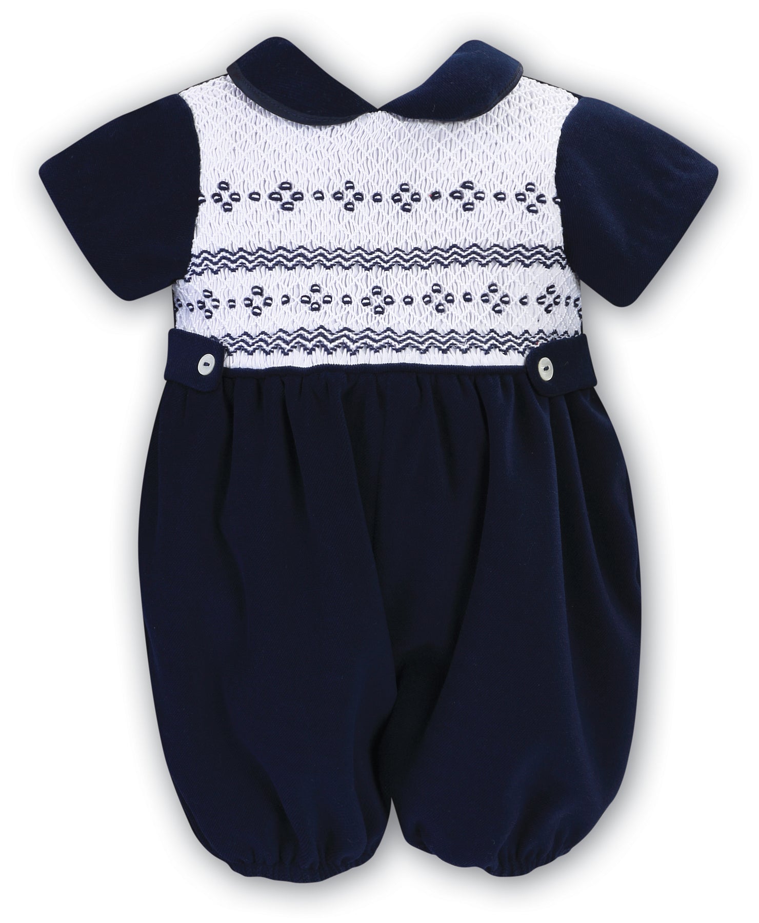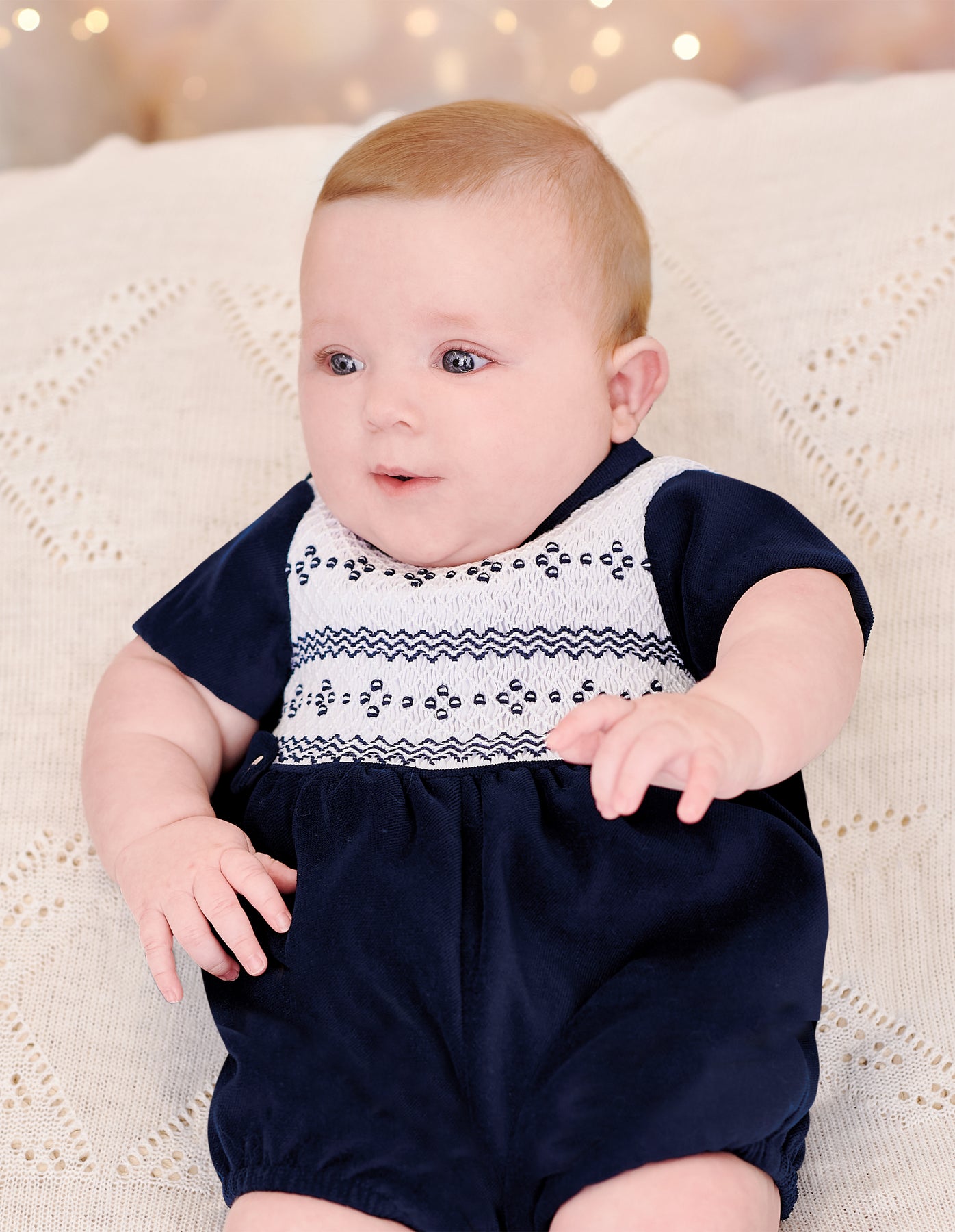 Sarah Louise Navy Velvet Hand Smocked Romper - 013042