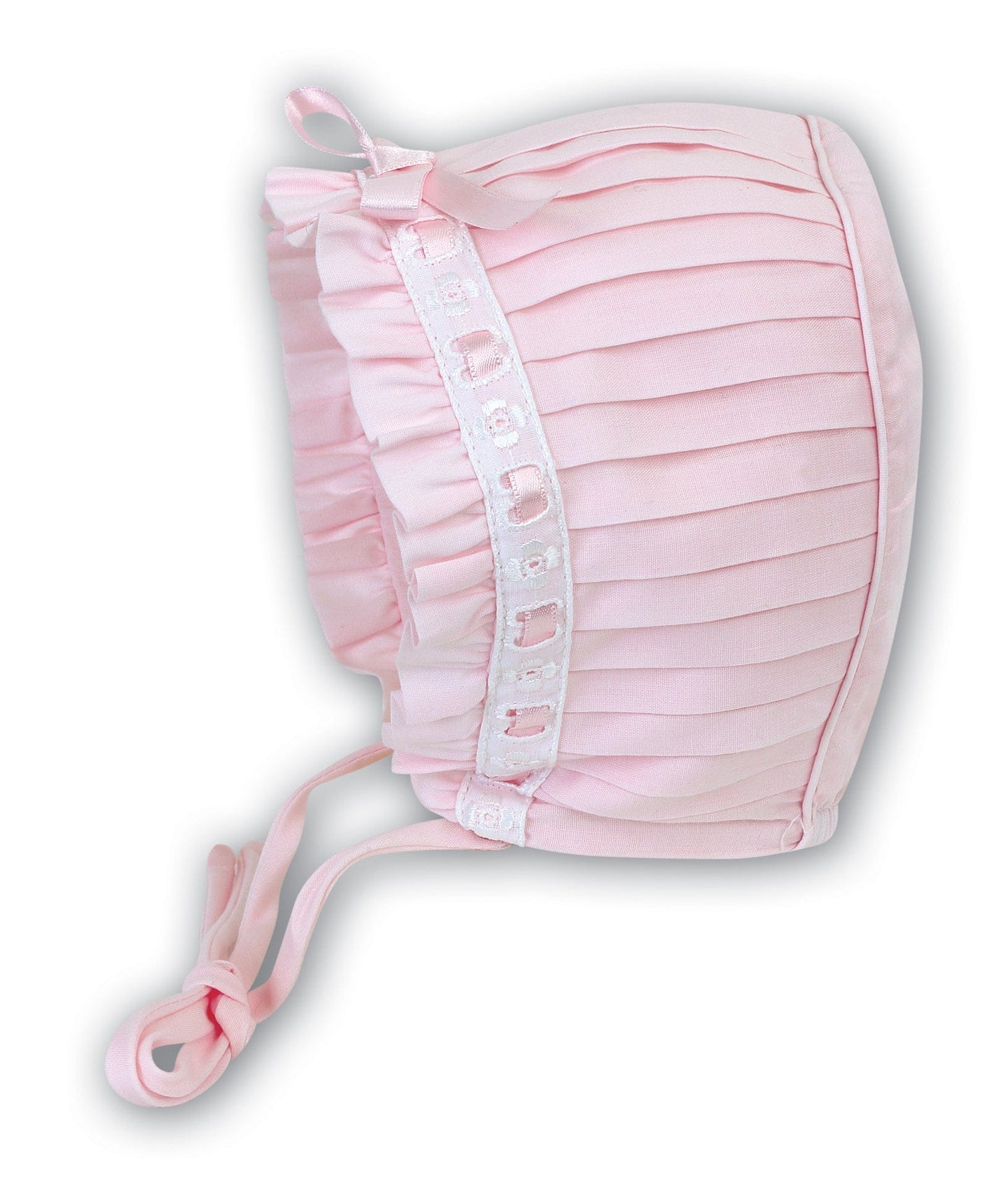 Our Classic Baby Girls Bonnet, delicately hand-pleated with a beautiful Satin Ribbon.