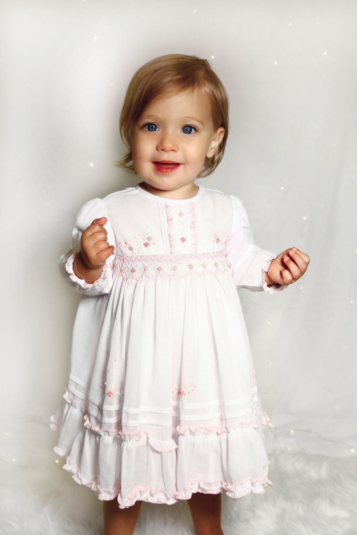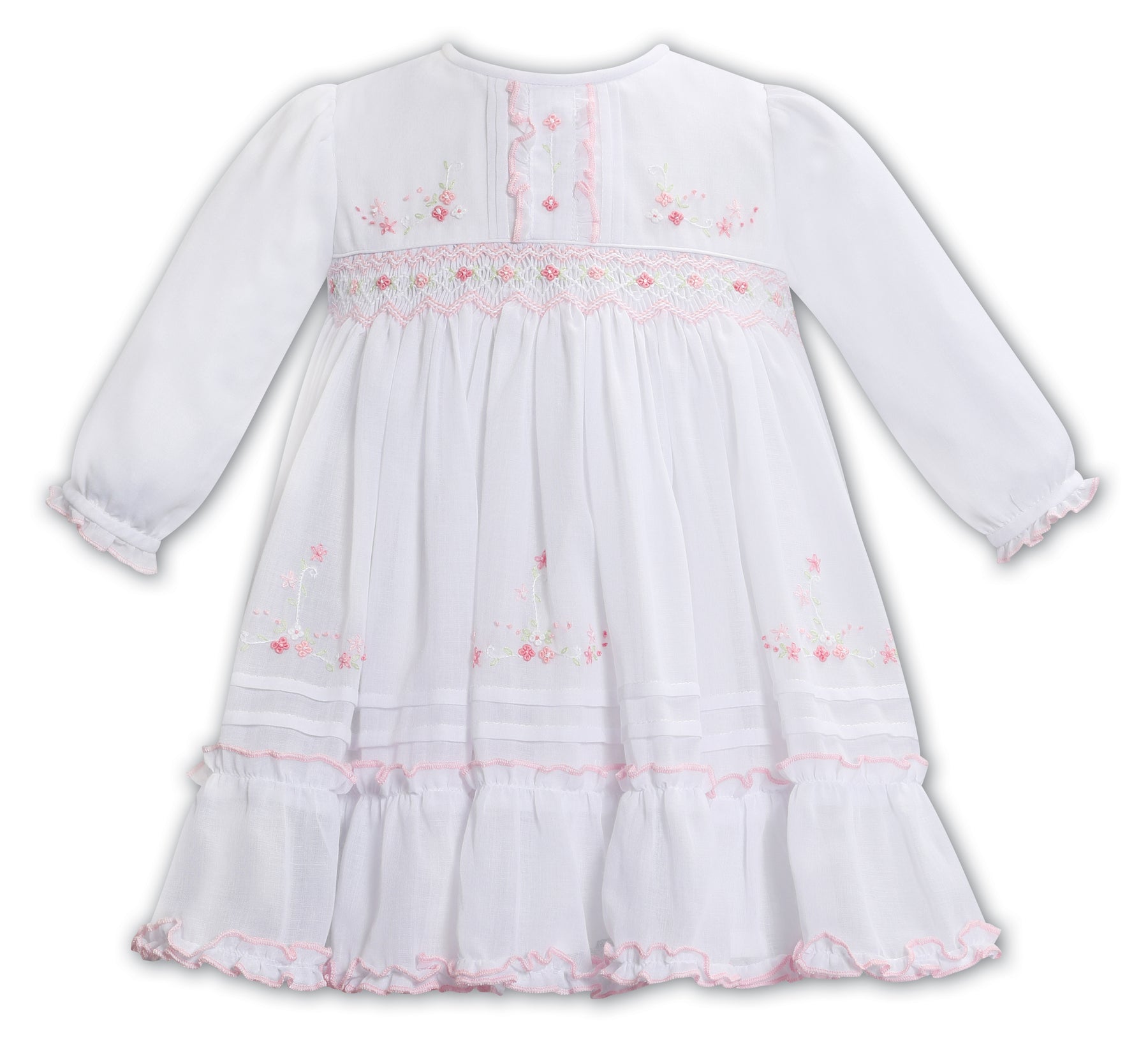 Sarah Louise White & Pink Hand Smocked Dress - 013364