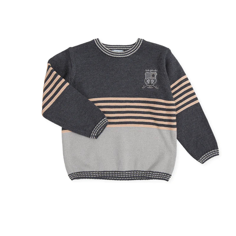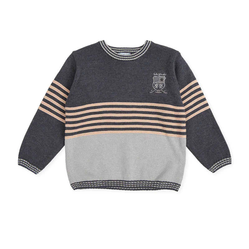 Expertly crafted with Tutto Piccolo's signature quality, this Boys Jumper, Shorts & Socks Set is a must-have for any young gentleman. The knitted jumper provides warmth and style, while the matching shorts and socks complete the look. Perfect for any occasion.