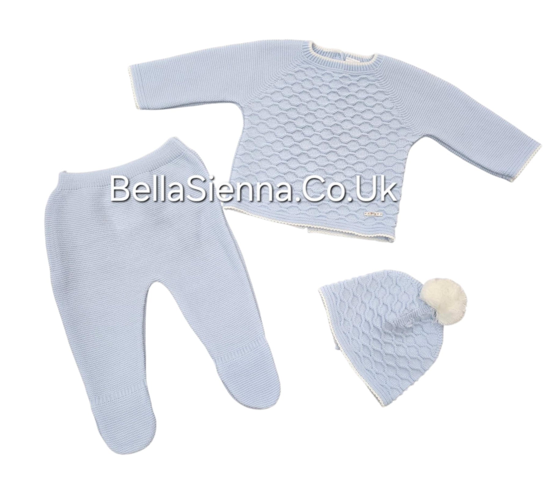 Boys Blue Three Piece Knitted Set With Hat - C7005