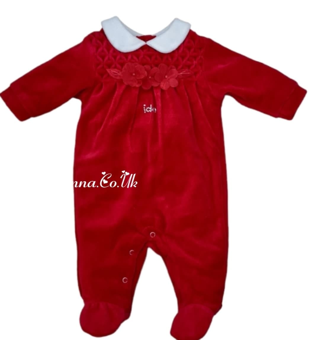 Designed with Christmas in mind, this adorable red velour babygrow by Tutto Piccolo has a Flower appliqué with diamante . Made in soft and cuddly cotton blend velour, with popper fastening to assist with dressing.