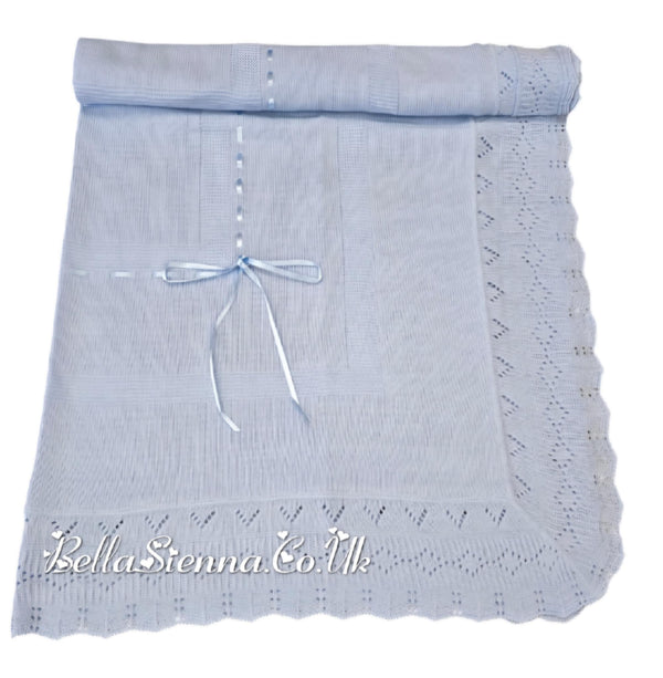 Dandelion Babies Pointelle Patterned White & Blue baby Shawl - A1082